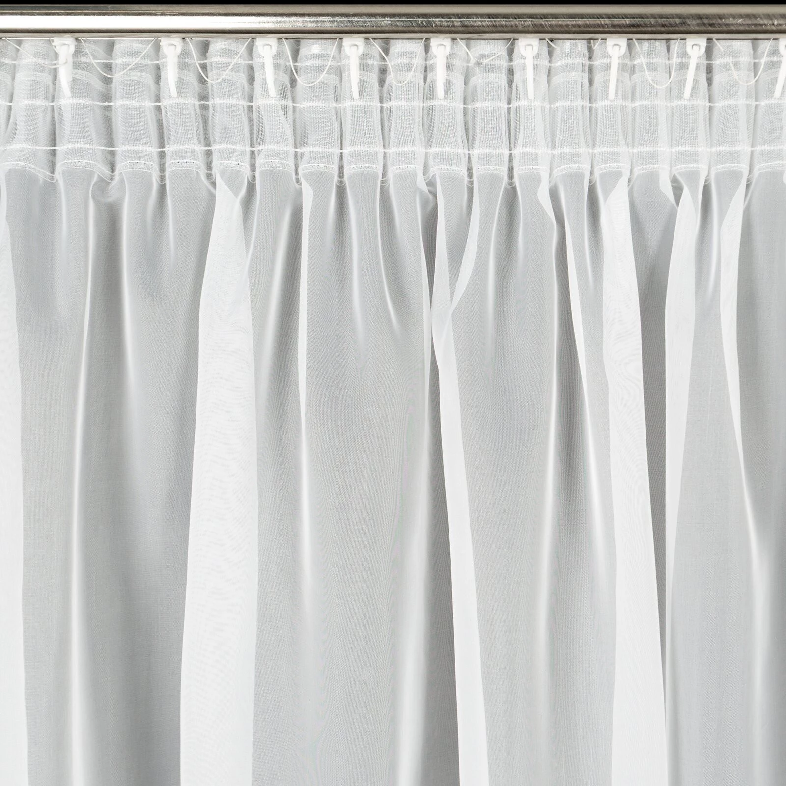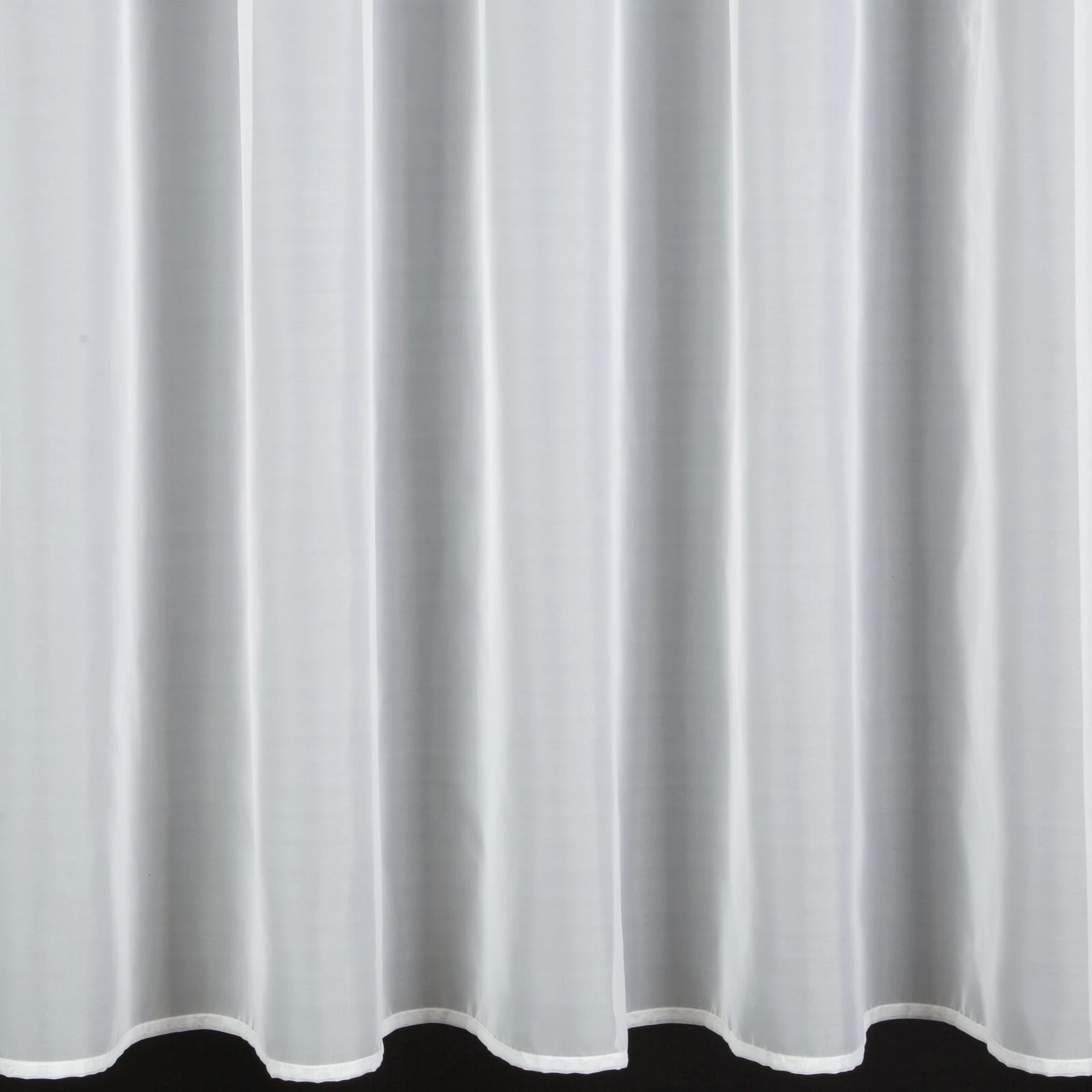 Klasyczna, długa, krótka firana uszyta z gładkiego, miękkiego woalu. Subtelna tkanina łatwo się pracuje a po upięciu układa się w miekkie fale. szerokość: 300 cm, długość: 300 cm, kolor: biały, Gramatura: 50 GSM, Skład: 100% poliester
