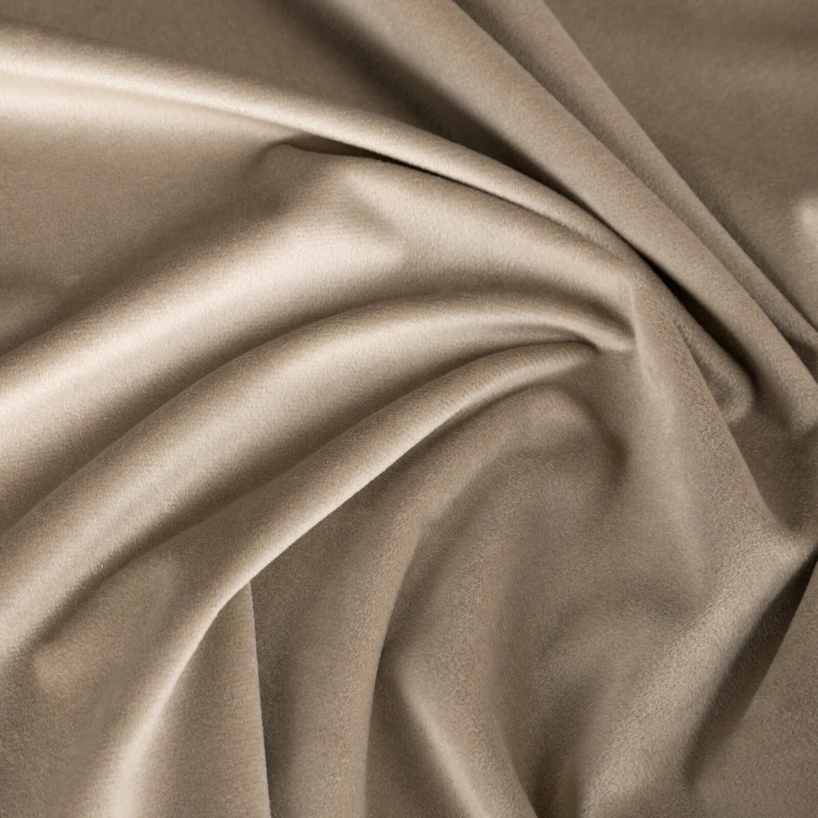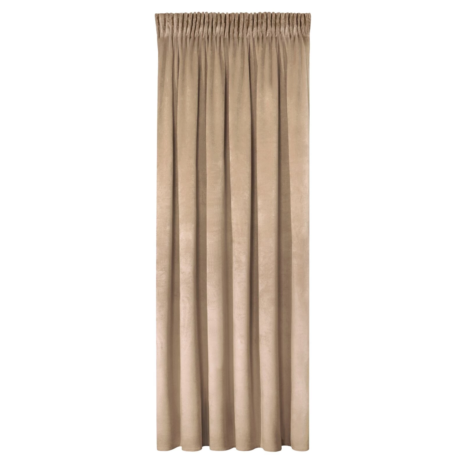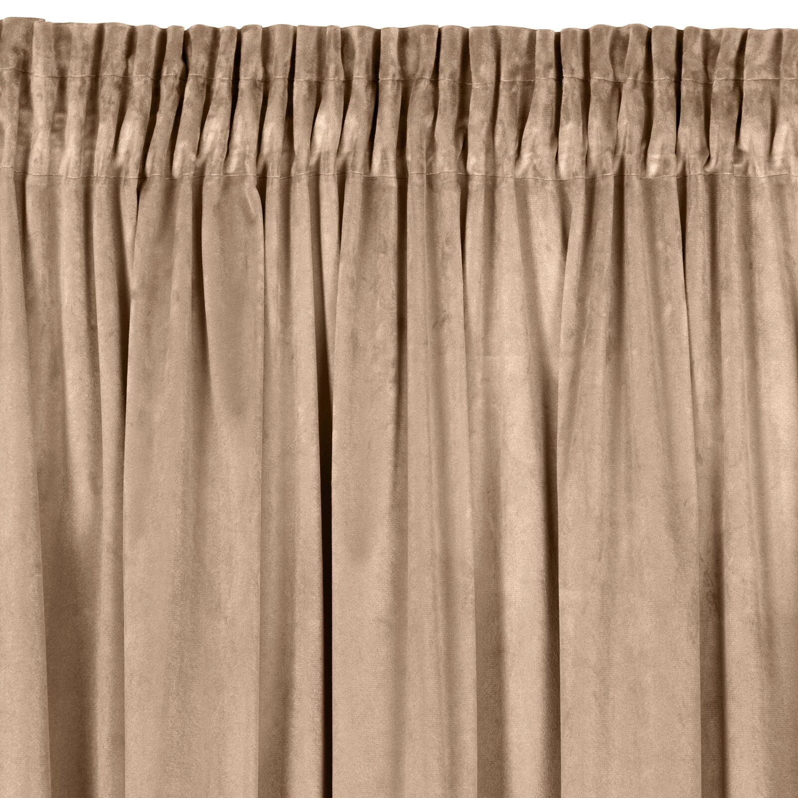 Miękka zasłona z welwetu o matowym wykończeniu. Mięsista tkanina o średnich właściwościach zaciemniających nadaje wnętrzu eleganckiego charakteru. szerokość: 140 cm, długość: 270 cm, kolor: ciemnobeżowy, Gramatura: 200 GSM, Skład: 100% poliester