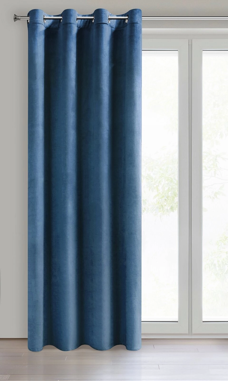 Miękka zasłona z welwetu o matowym wykończeniu. Mięsista tkanina o średnich właściwościach zaciemniających nadaje wnętrzu eleganckiego charakteru. szerokość: 140 cm, długość: 250 cm, kolor: granatowy, Gramatura: 200 GSM, Skład: 100% poliester