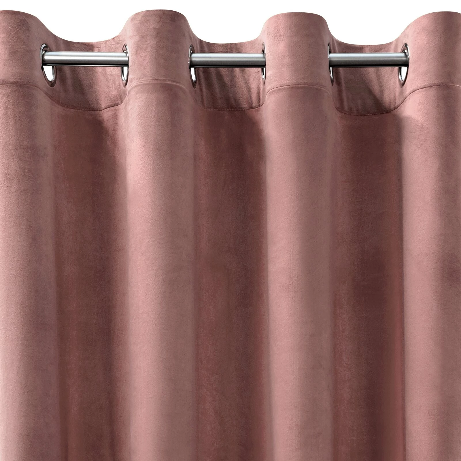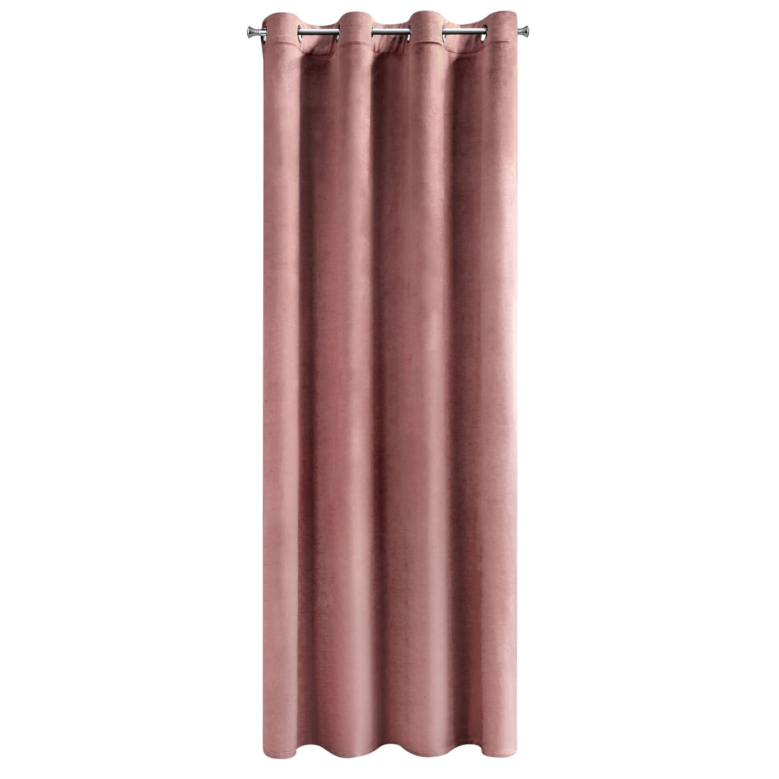 Miękka zasłona z welwetu o matowym wykończeniu. Mięsista tkanina o średnich właściwościach zaciemniających nadaje wnętrzu eleganckiego charakteru. szerokość: 140 cm, długość: 250 cm, kolor: ciemnoróżowy, Gramatura: 200 GSM, Skład: 100% poliester