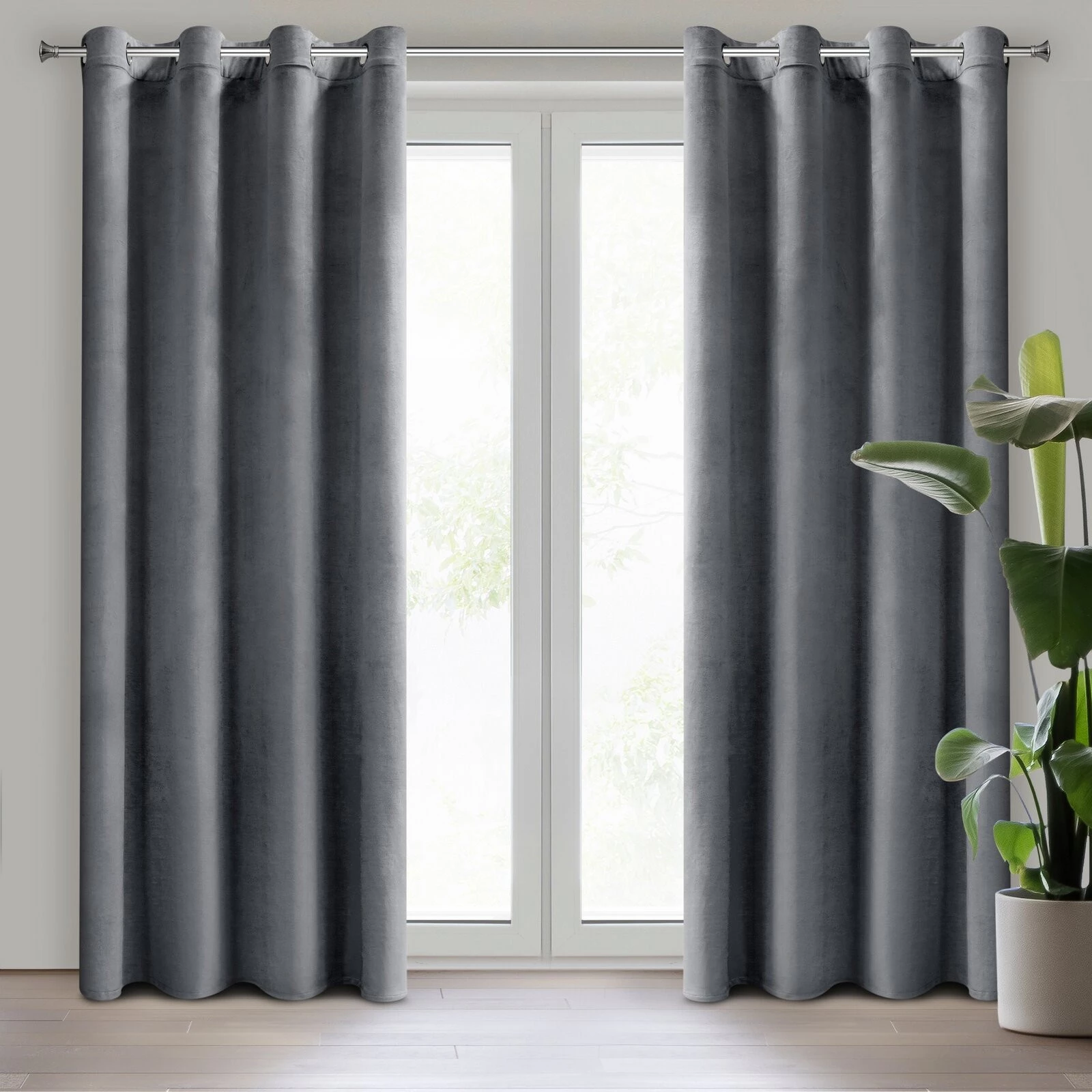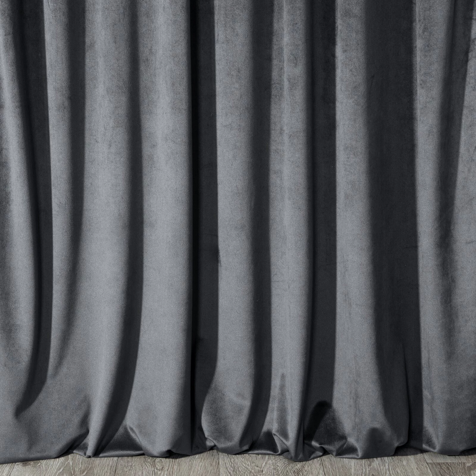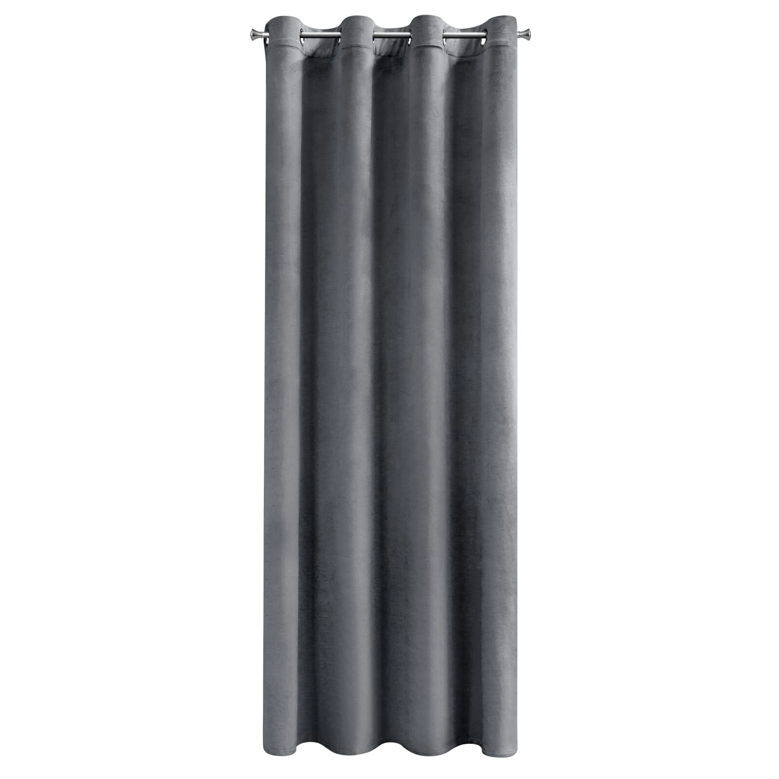 Miękka zasłona z welwetu o matowym wykończeniu. Mięsista tkanina o średnich właściwościach zaciemniających nadaje wnętrzu eleganckiego charakteru. szerokość: 140 cm, długość: 250 cm, kolor: grafitowy, Gramatura: 200 GSM, Skład: 100% poliester