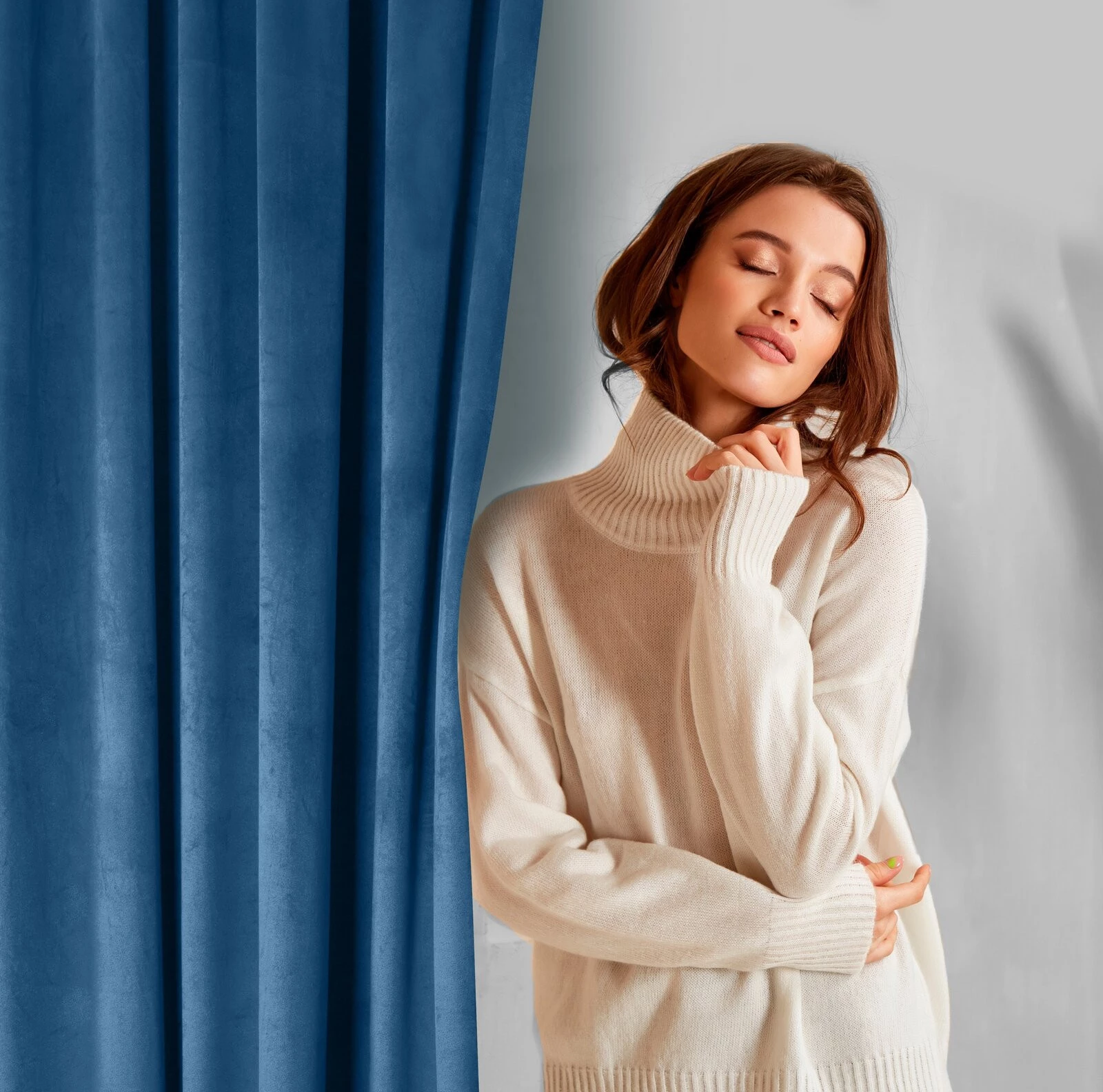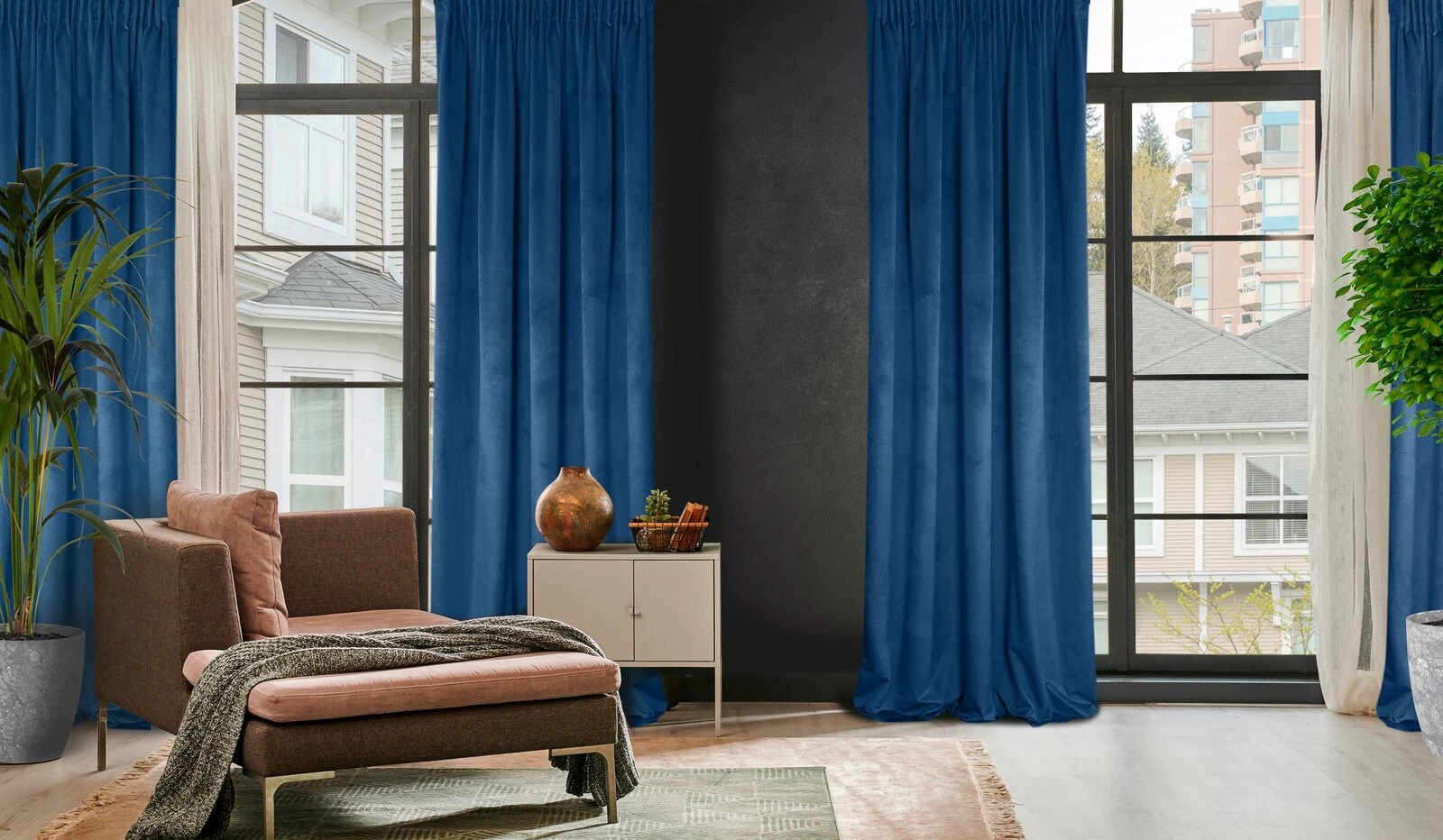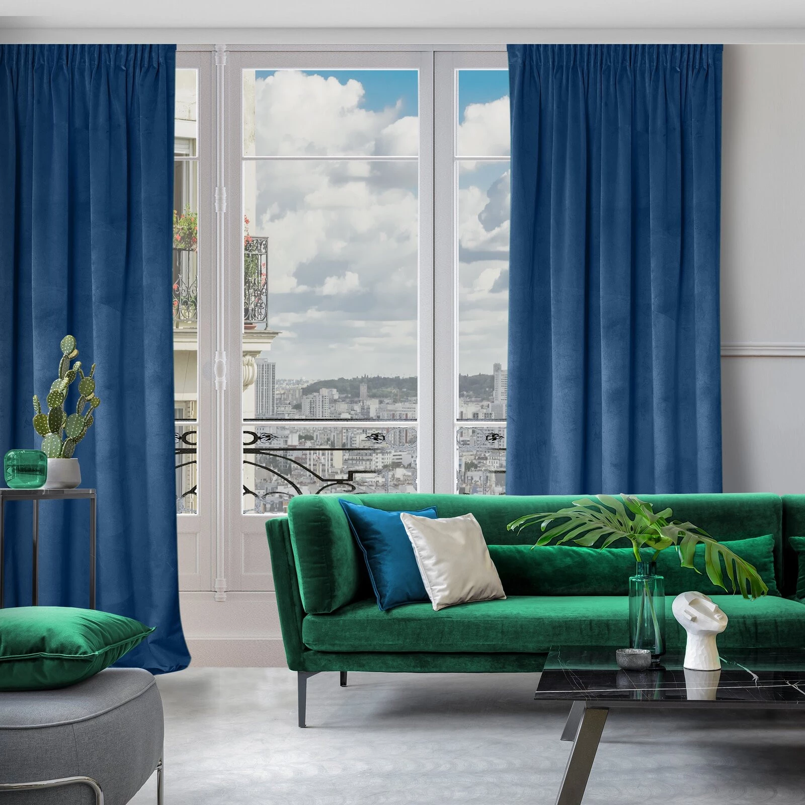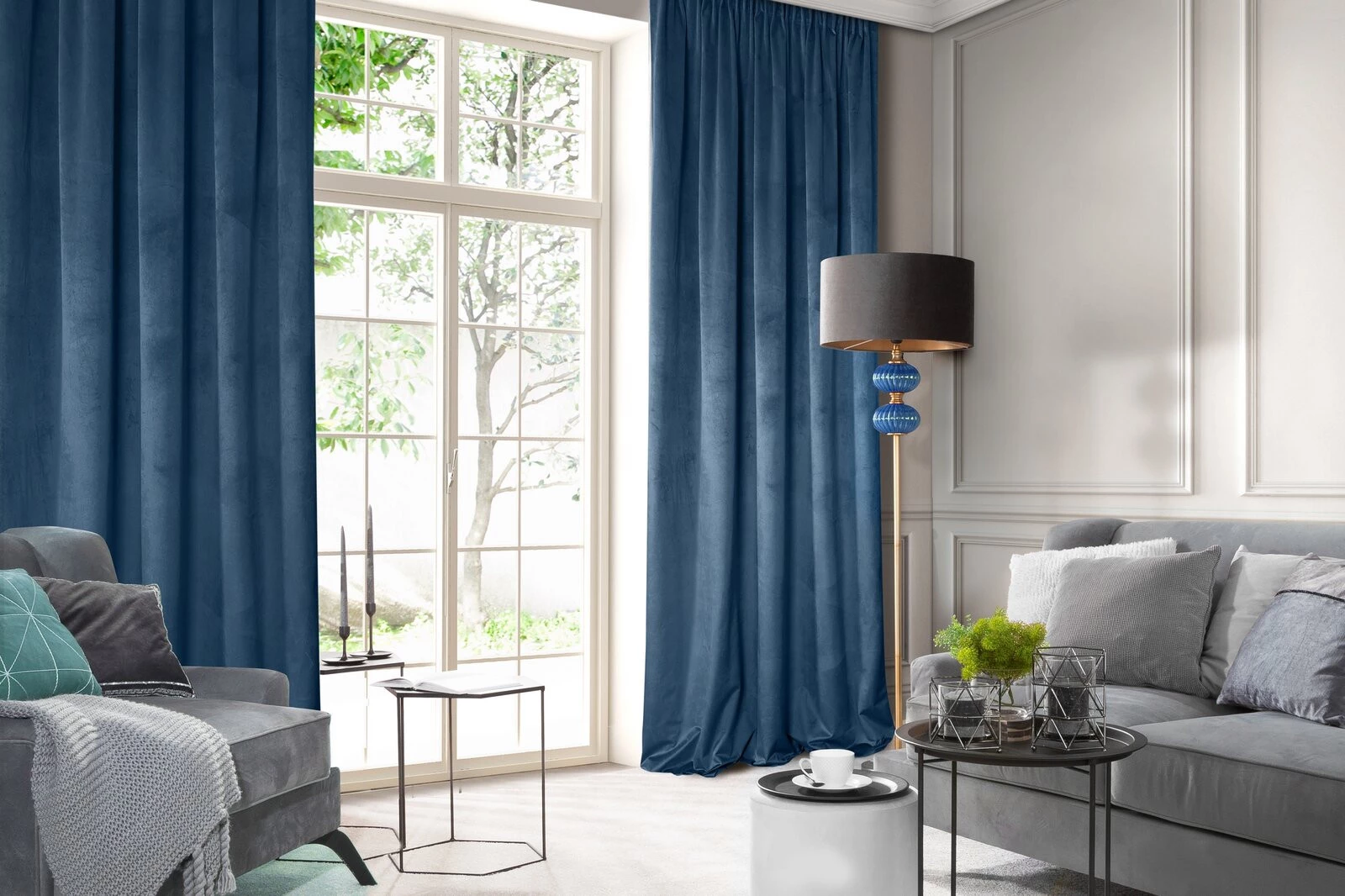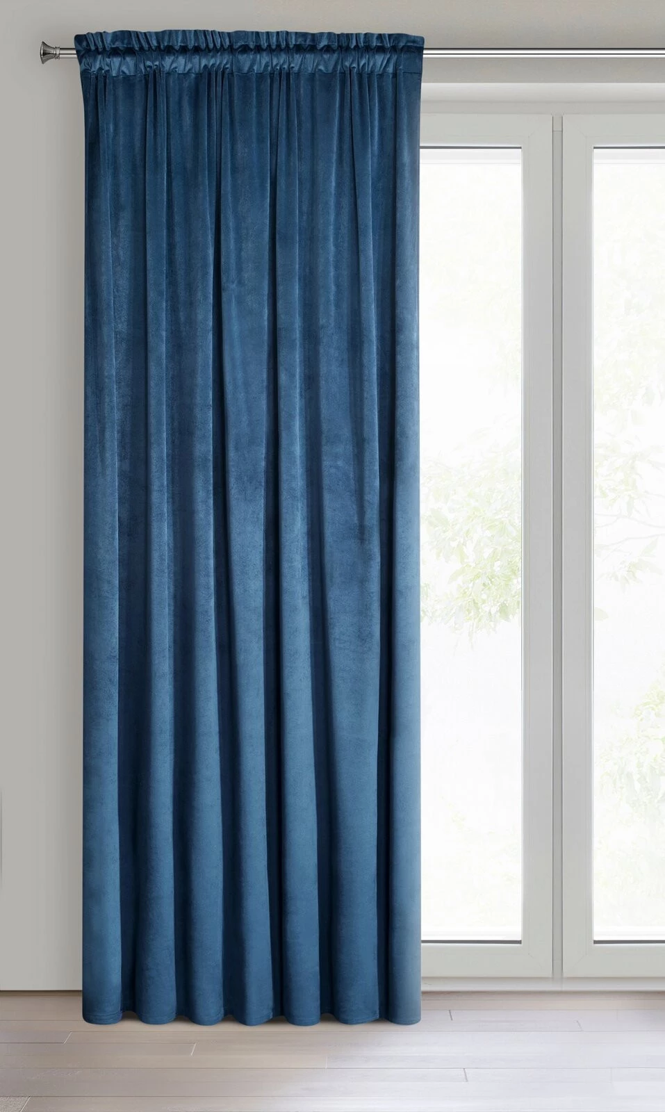 - Zasłona welwetowa jednokolorowa szerokość: 140 cm, długość: 270 cm, kolor: granatowy, Gramatura: 200 GSM, Skład: 100% poliester