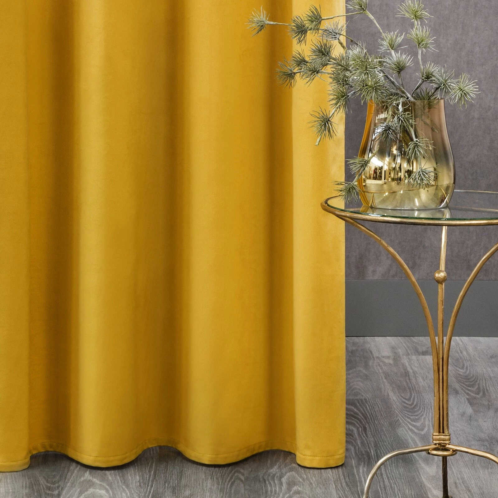 Zasłona welwetowa jednokolorowa szerokość: 140 cm, długość: 270 cm, kolor: musztardowy, Gramatura: 200 GSM, Skład: 100% poliester