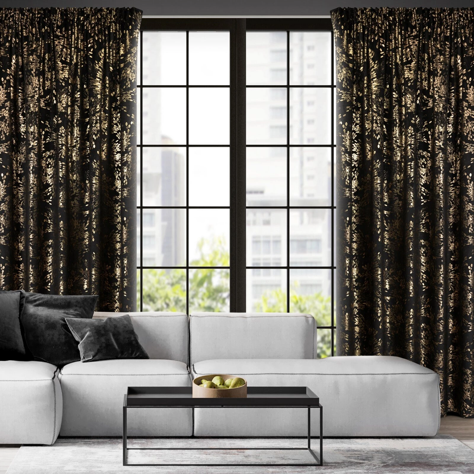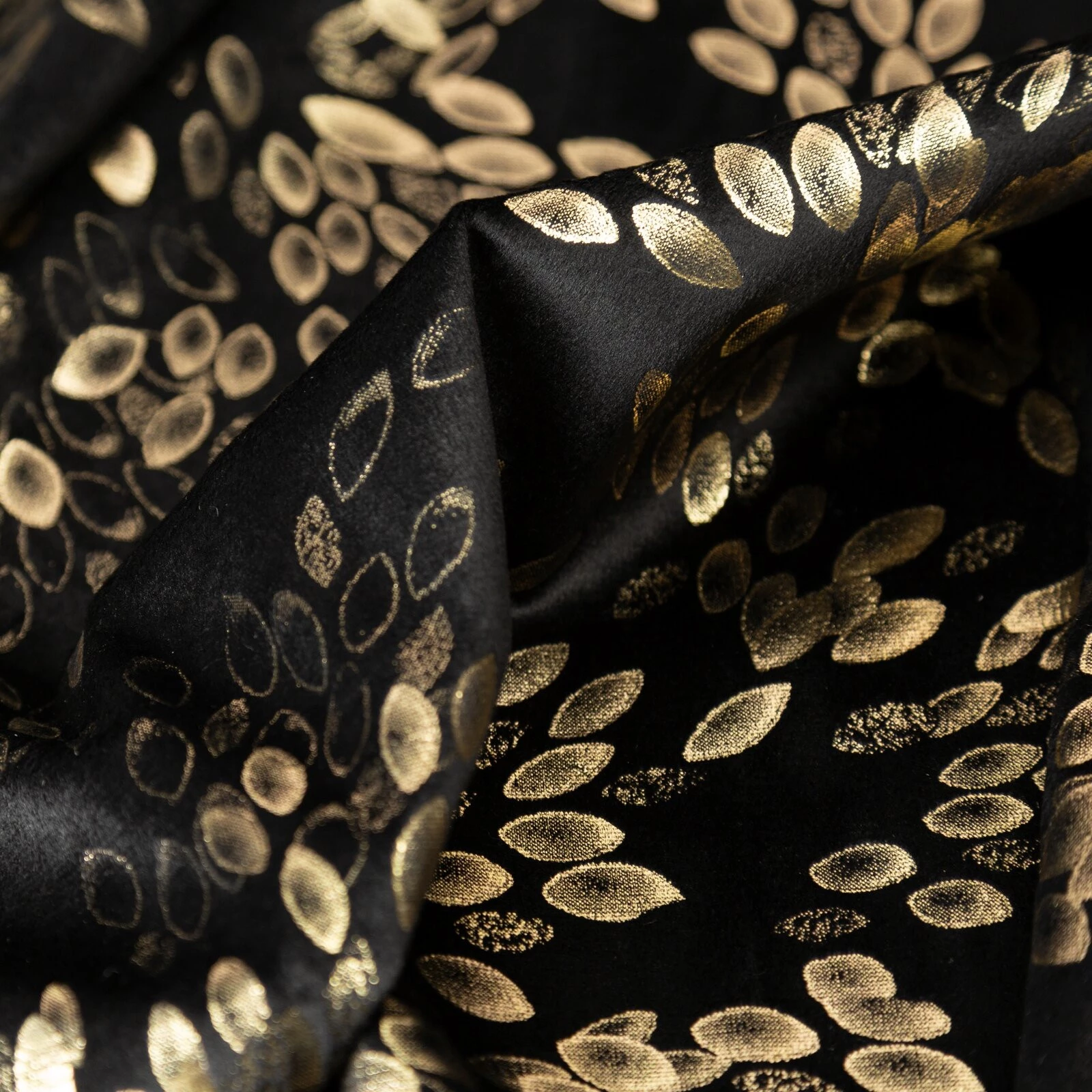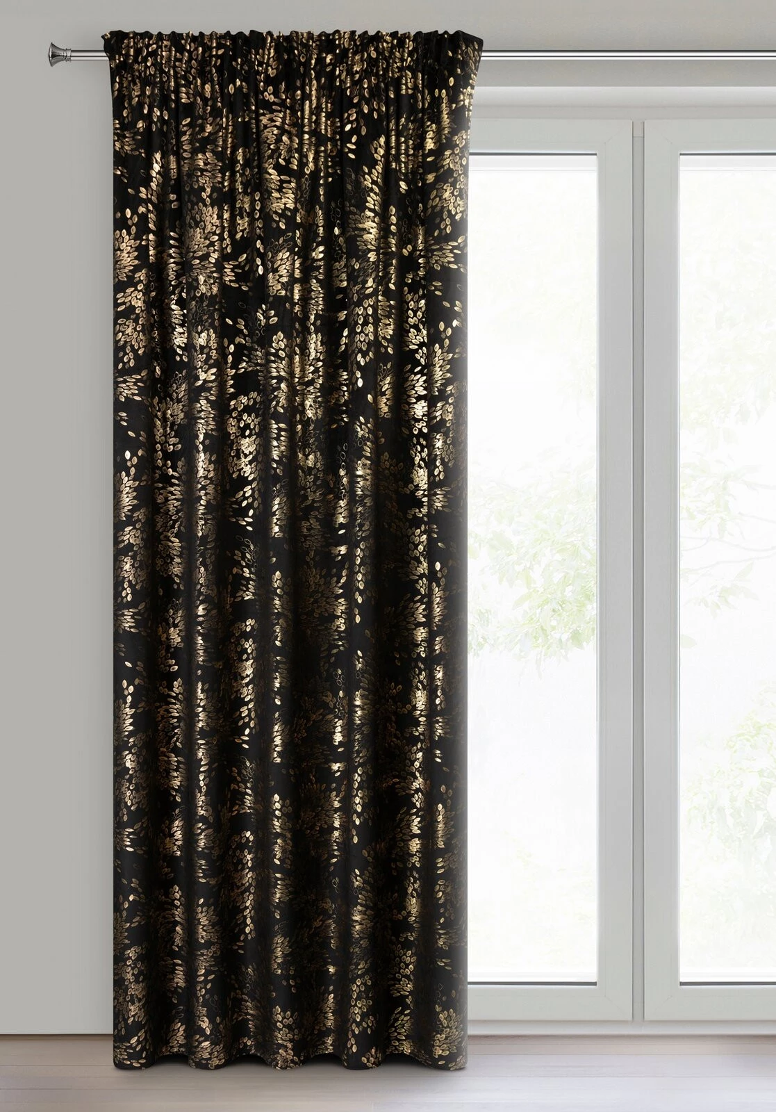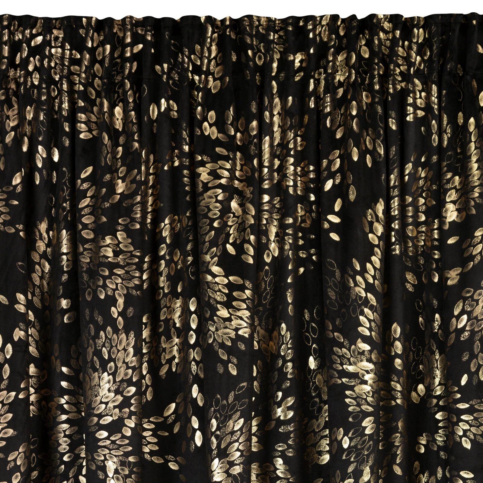 Zasłona gotowa welwetowa z nadrukiem błyszczącym szerokość: 140 cm, długość: 270 cm, kolor: czarny, Gramatura: 200 GSM, Skład: 100% poliester