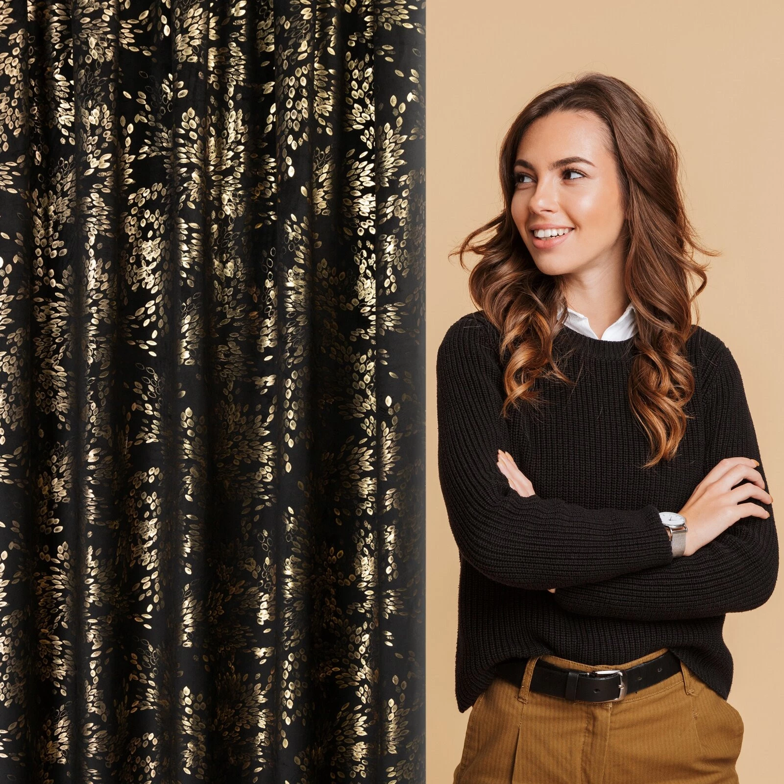 - Zasłona gotowa welwetowa z nadrukiem błyszczącym szerokość: 140 cm, długość: 270 cm, kolor: czarny, Gramatura: 200 GSM, Skład: 100% poliester