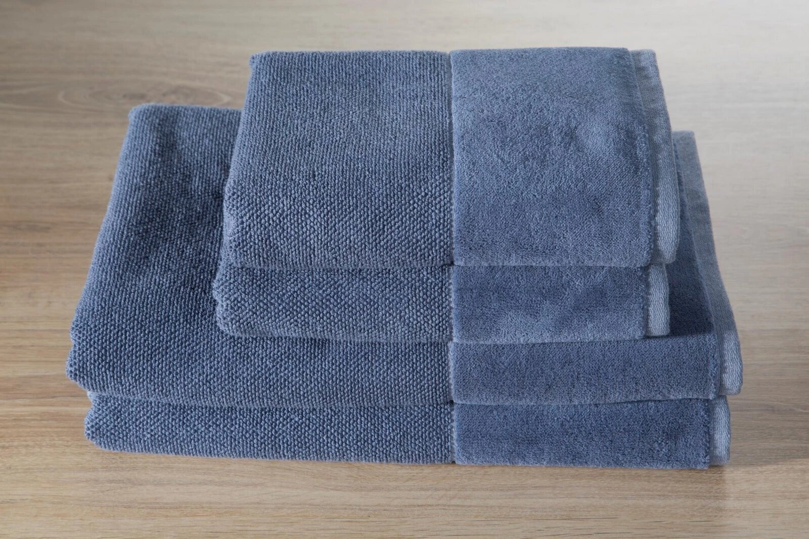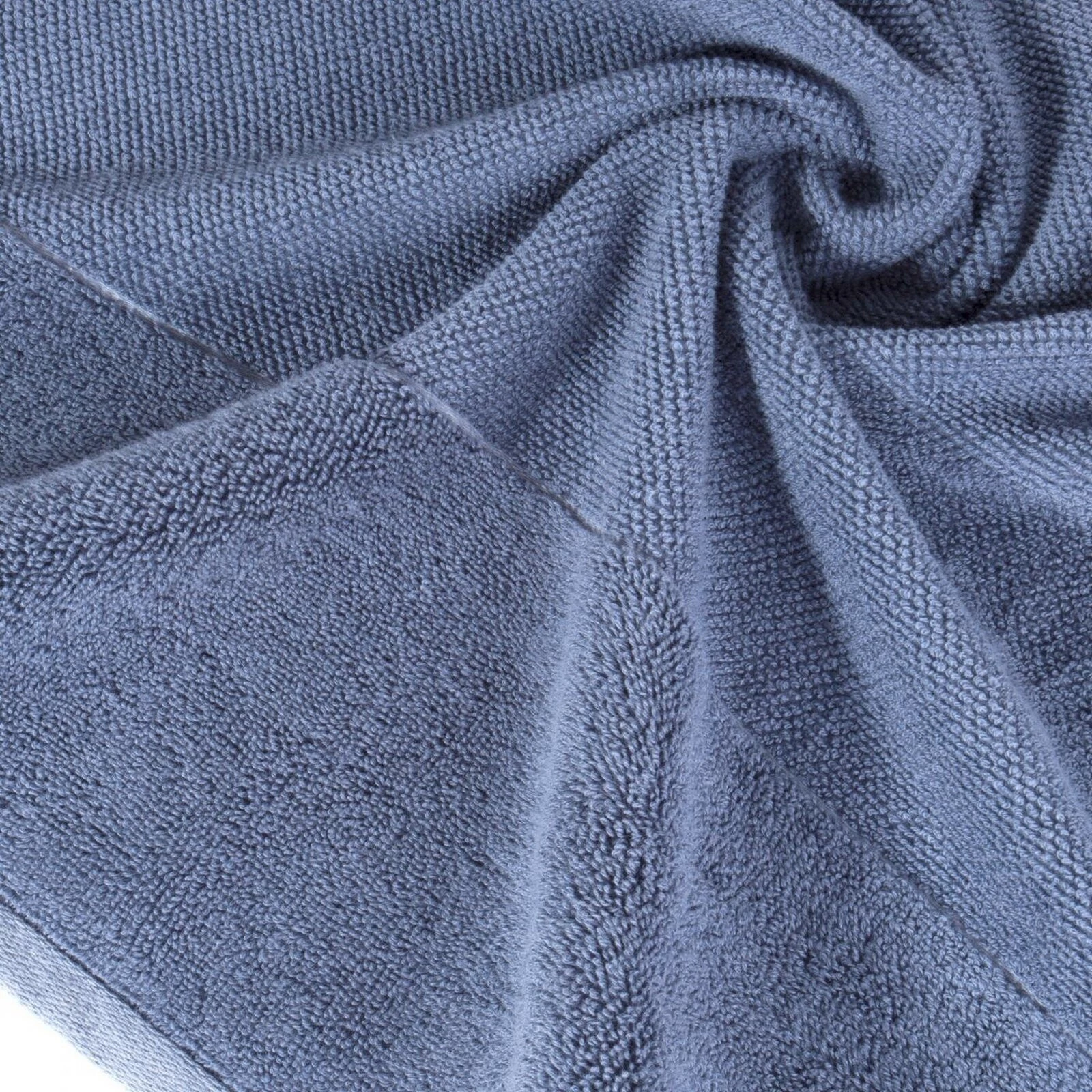 Miękki i bardzo puszysty ręcznik kąpielowy o minimalistycznym charakterze. Szeroka bordiura z welwetu dodaje lekkiego połysku. Chłonna bawełna frote nie farbuje szerokość: 30 cm, długość: 50 cm, kolor: niebieski, Gramatura: 500 GSM, Skład: 100% bawełna
