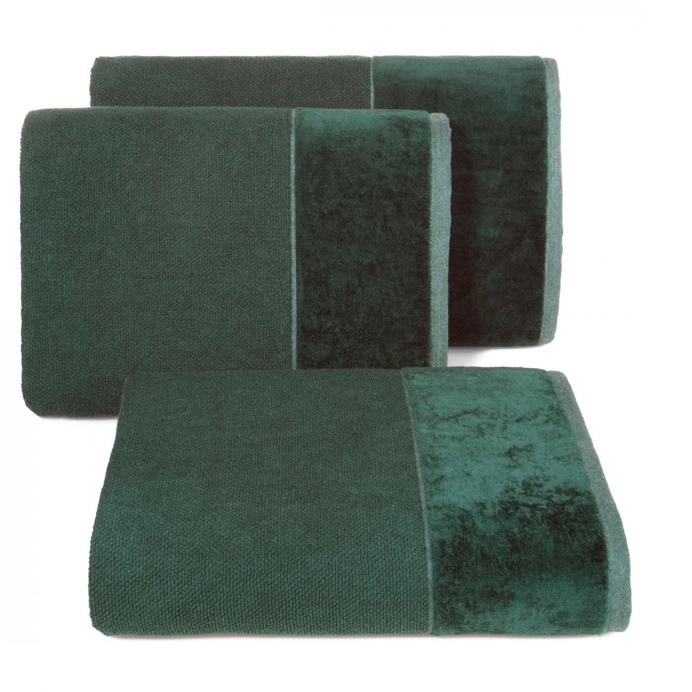 Miękki i bardzo puszysty ręcznik kąpielowy o minimalistycznym charakterze. Szeroka bordiura z welwetu dodaje lekkiego połysku. Chłonna bawełna frote nie farbuje szerokość: 30 cm, długość: 50 cm, kolor: butelkowy zielony, Gramatura: 500 GSM, Skład: 100% bawełna