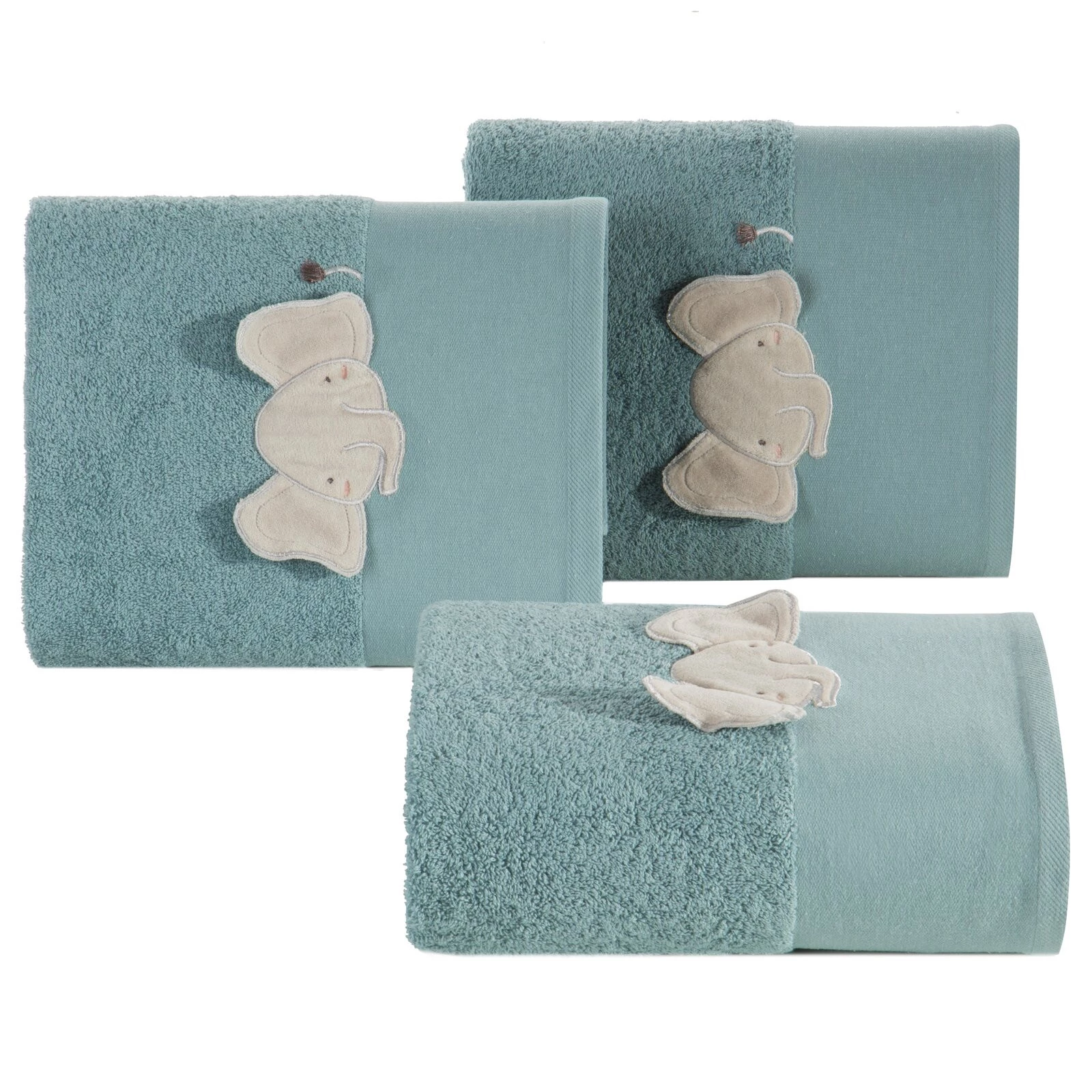 Dziecięcy ręcznik bawełniany z aplikacją szerokość: 50 cm, długość: 90 cm, kolor: niebieski, Gramatura: 480 GSM, Skład: 100% bawełna