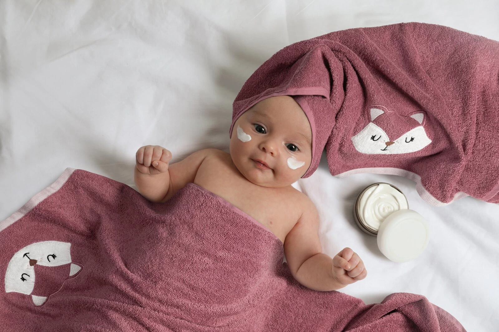 Ręcznik dziecięcy z aplikacją szerokość: 50 cm, długość: 90 cm, kolor: różowy, Gramatura: 450 GSM, Skład: 100% bawełna