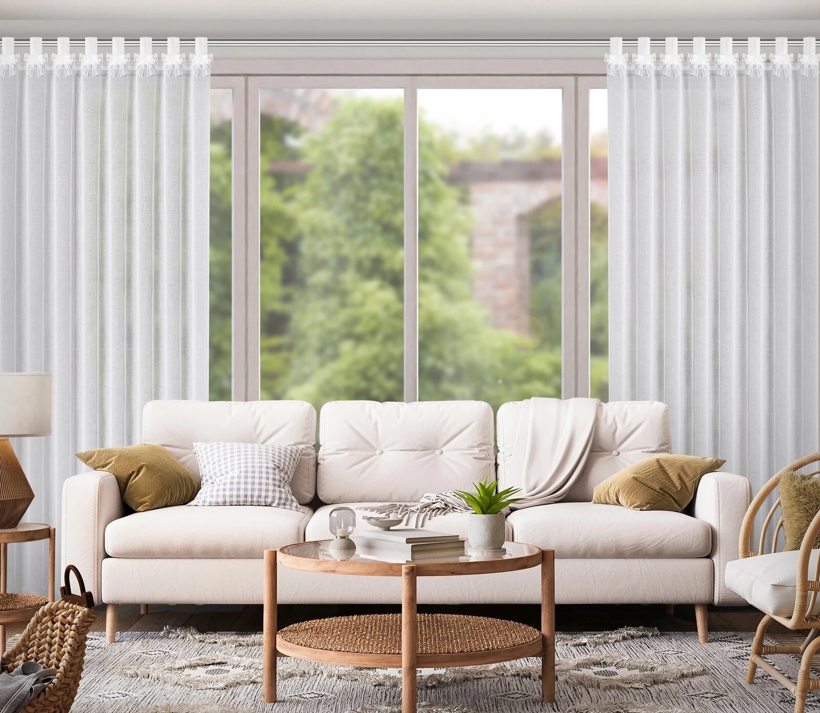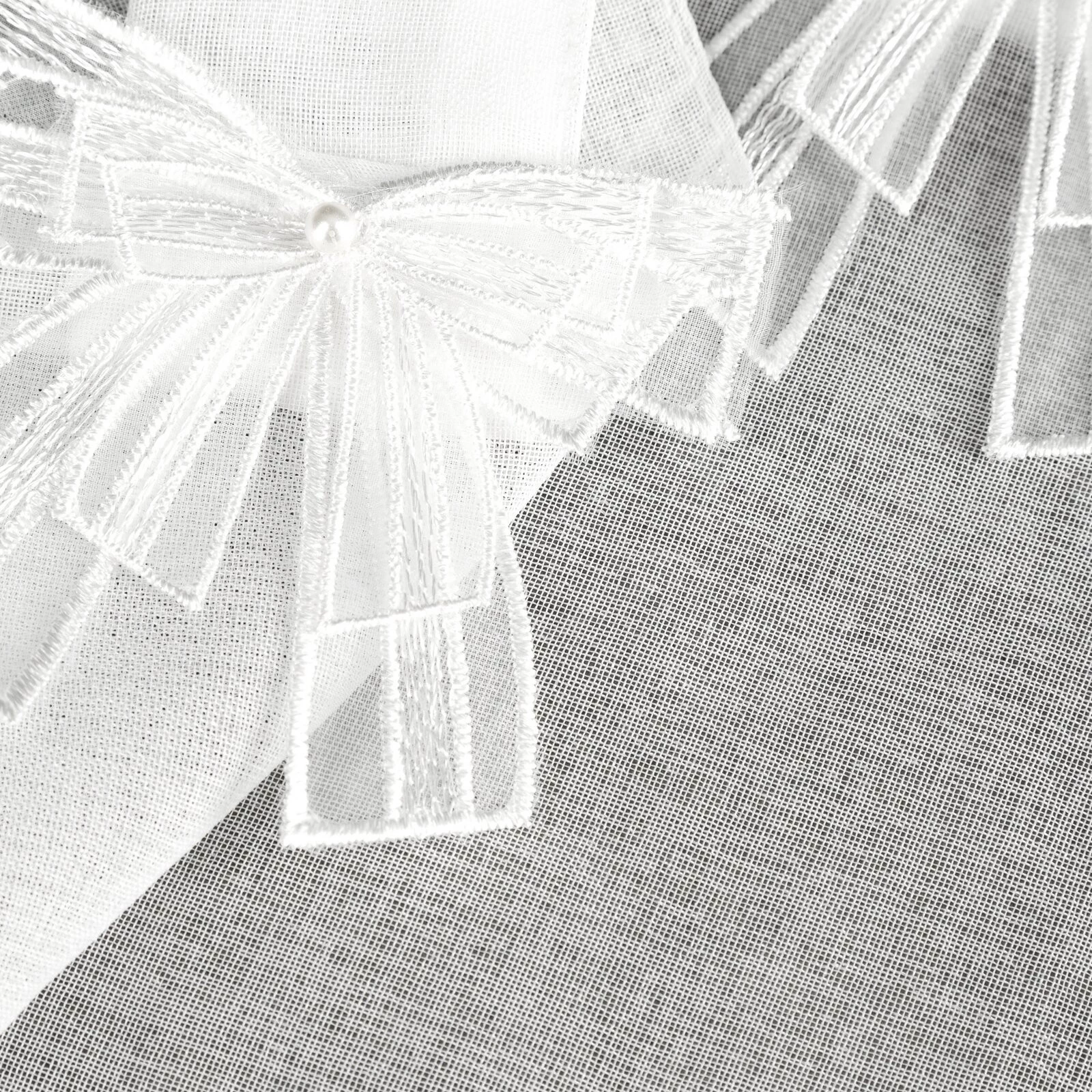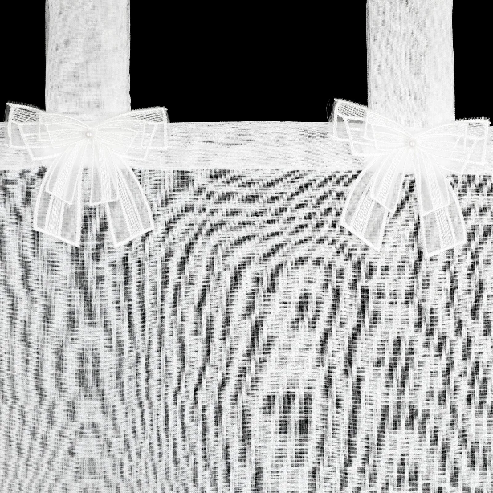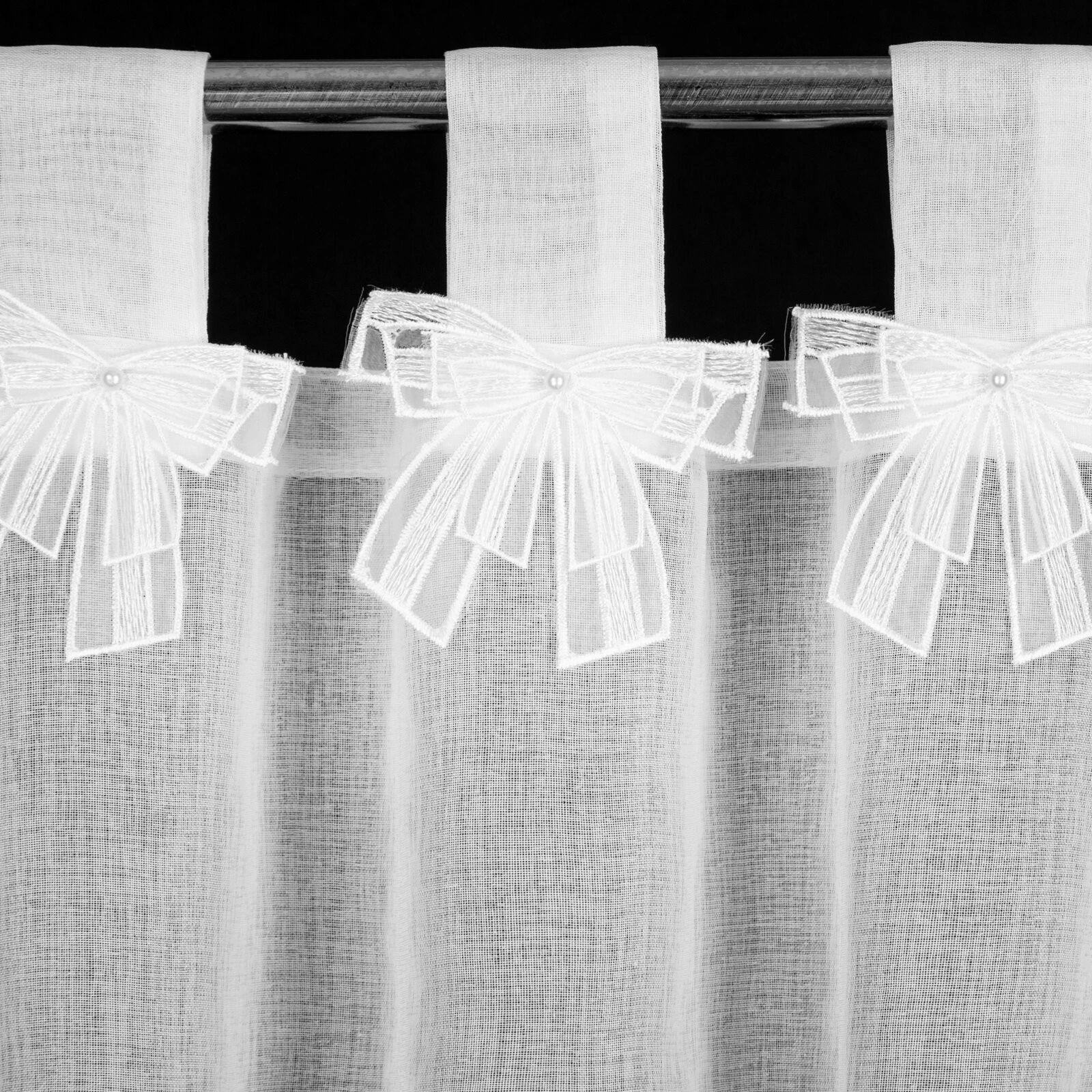 - Firana gotowa z dekoracyjnymi szelkami w kształcie kokardek szerokość: 140 cm, długość: 250 cm, kolor: biały, Gramatura: 70 GSM, Skład: 100% poliester