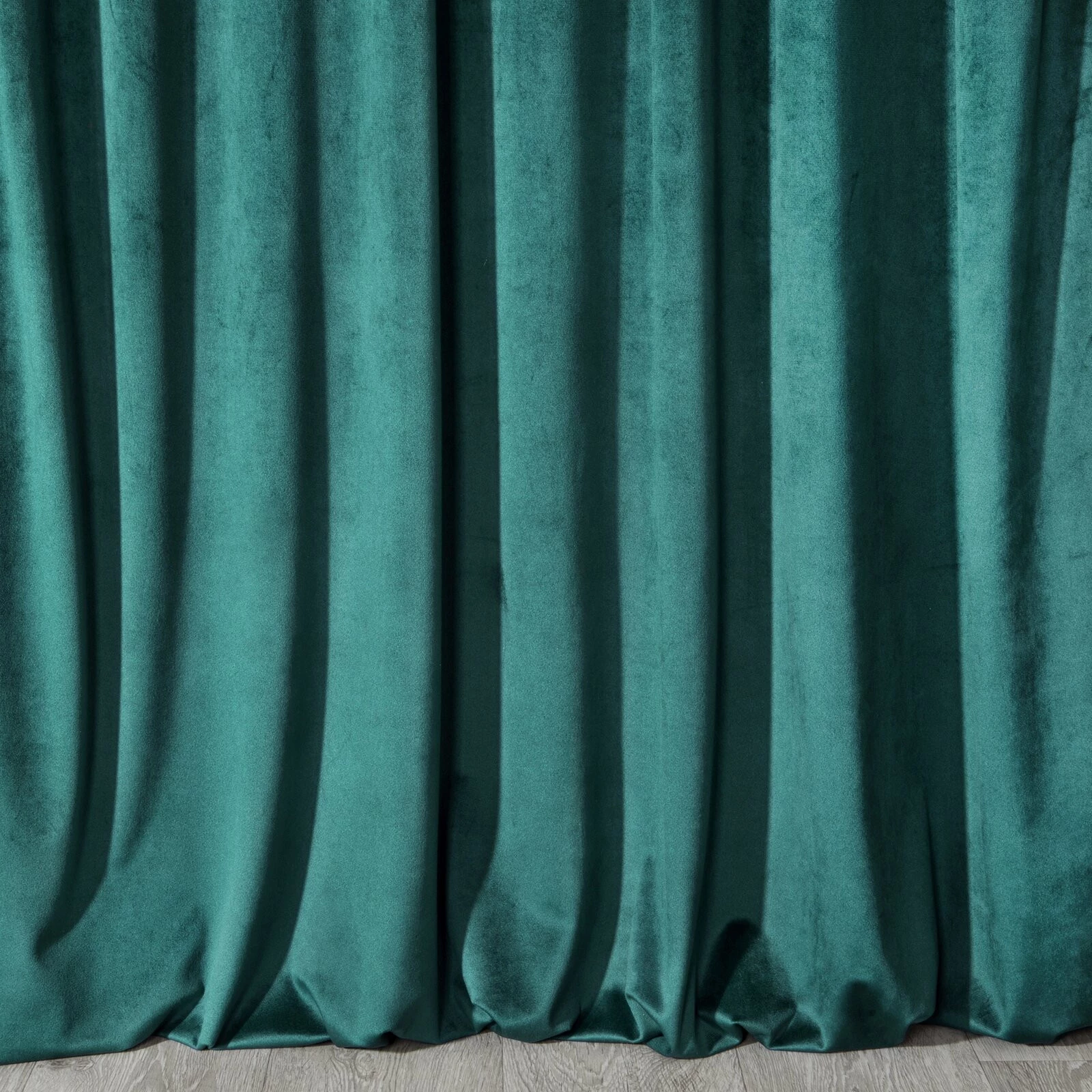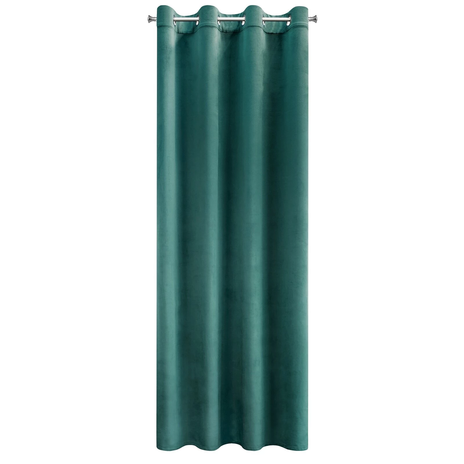 Miękka zasłona z welwetu o matowym wykończeniu. Mięsista tkanina o średnich właściwościach zaciemniających nadaje wnętrzu eleganckiego charakteru. szerokość: 140 cm, długość: 250 cm, kolor: ciemnoturkusowy, Gramatura: 200 GSM, Skład: 100% poliester