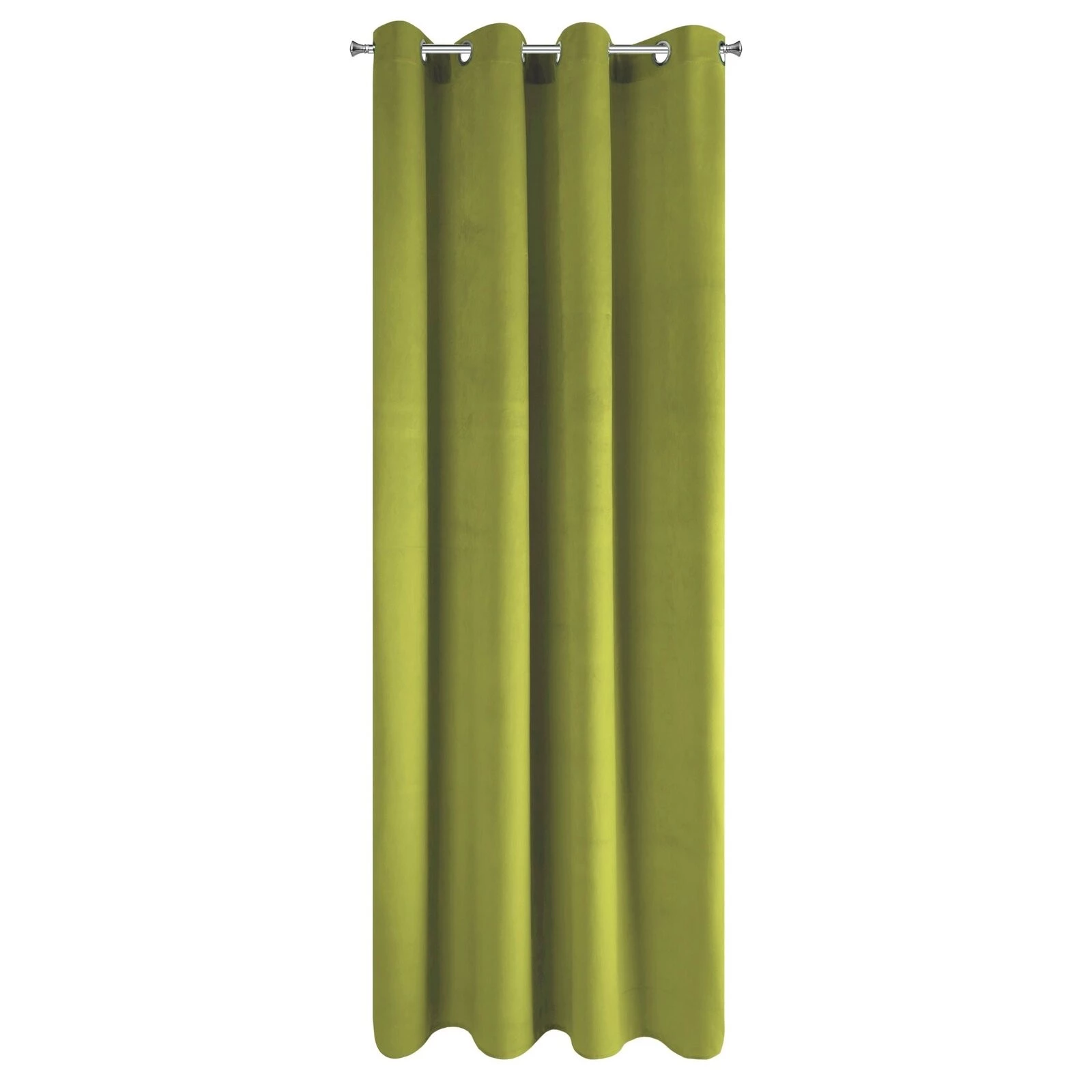 Miękka zasłona gotowa z jednokolorowego aksamitu o charakterystycznym dla welwetu połysku. Mięsista tkanina daje wysoki stopień zaciemnienia wnętrza. szerokość: 140 cm, długość: 250 cm, kolor: oliwkowy, Gramatura: 215 GSM, Skład: 100% poliester