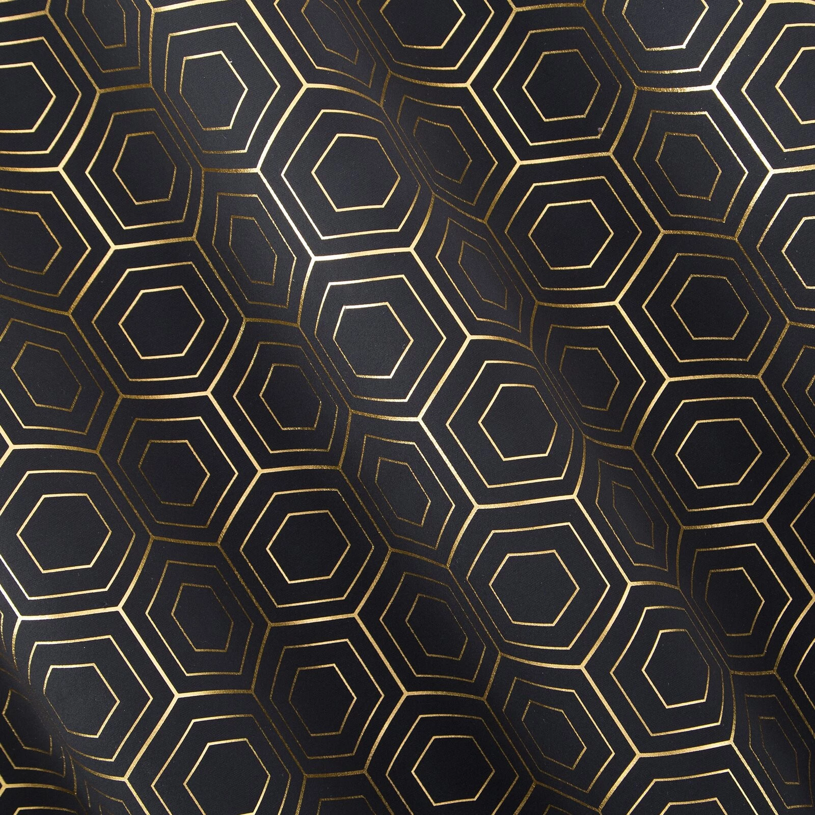 - Zasłona zaciemniająca ze złotym, geometrycznym nadrukiem szerokość: 135 cm, długość: 250 cm, kolor: czarny, Gramatura: 190 GSM, Skład: 100% poliester