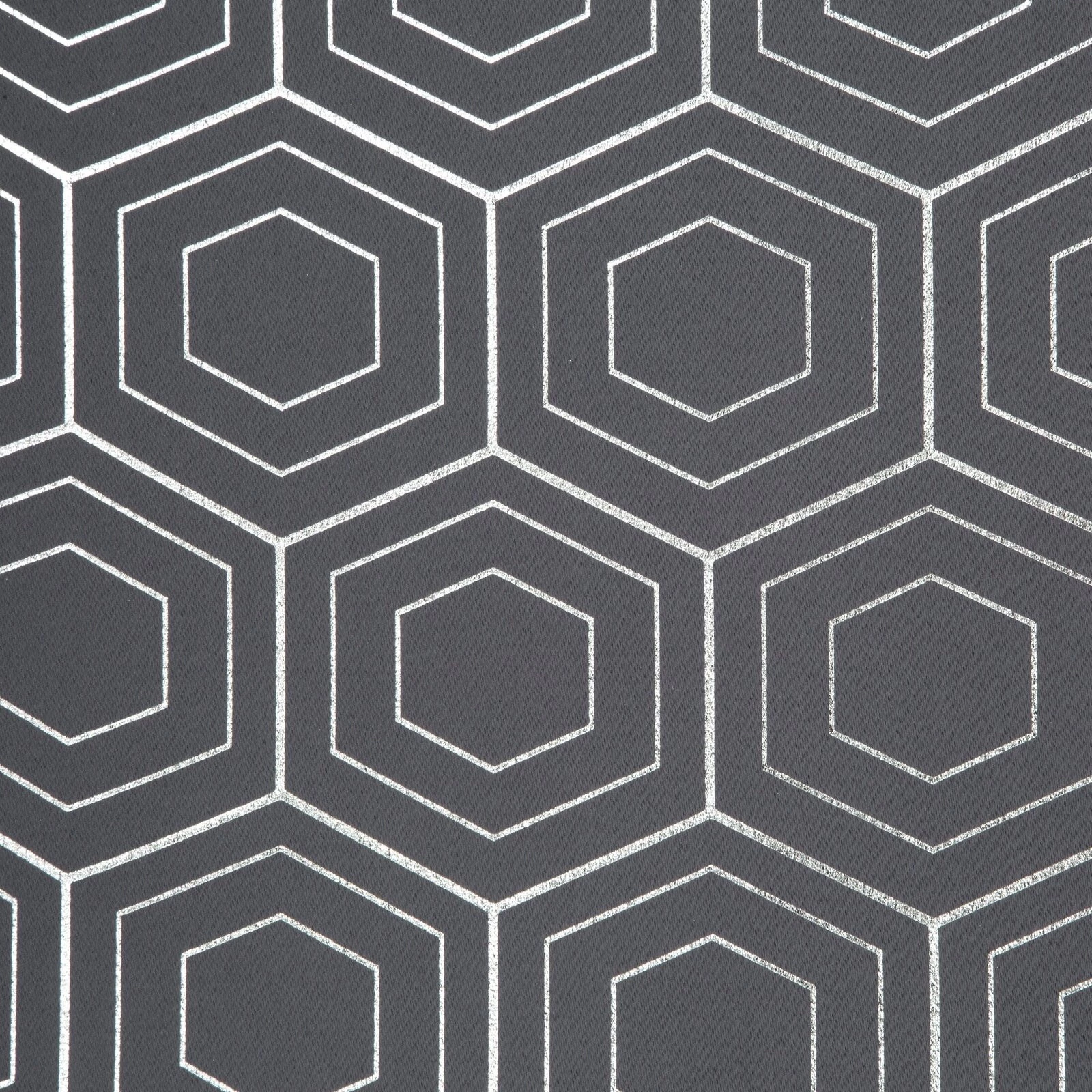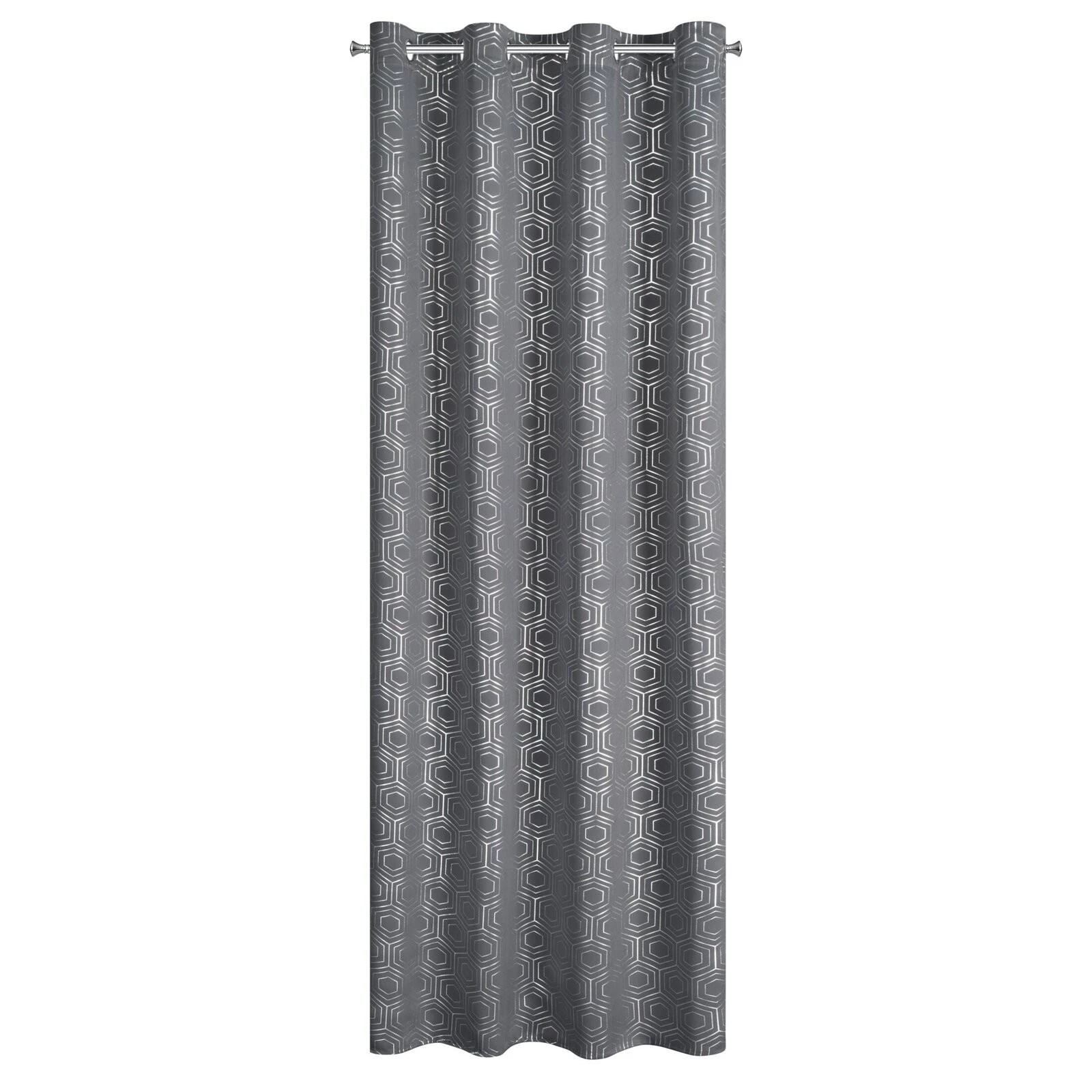 - Zasłona zaciemniająca ze srebrnym, geometrycznym nadrukiem szerokość: 135 cm, długość: 250 cm, kolor: grafitowy, Gramatura: 195 GSM, Skład: 100% poliester