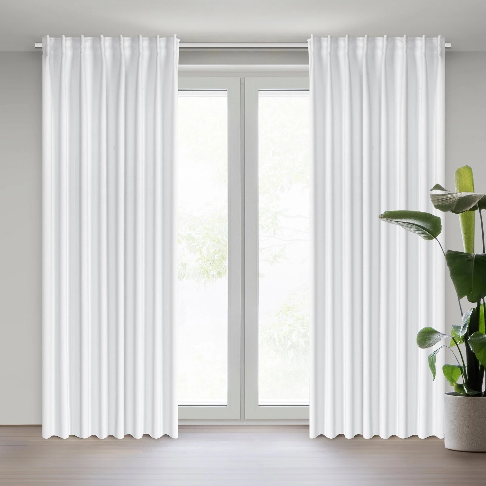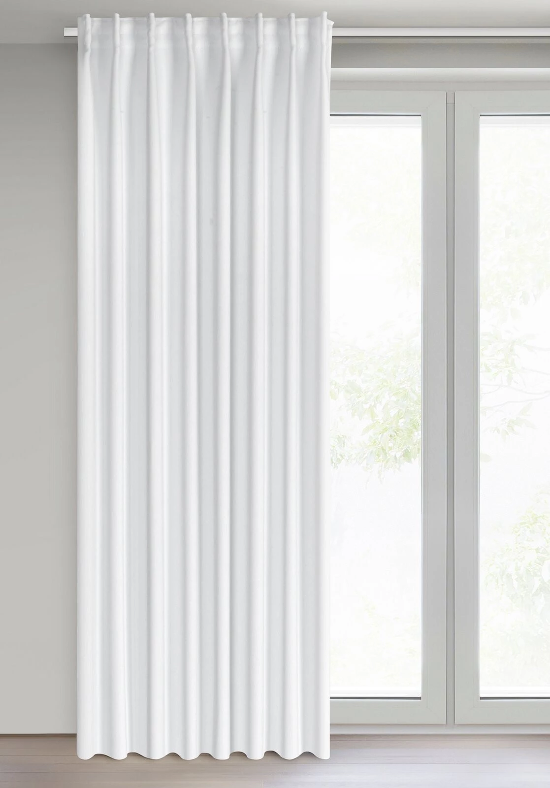 - Zasłona zaciemniająca jednokolorowa z taśmą do szyn sufitowych szerokość: 140 cm, długość: 300 cm, kolor: biały, Gramatura: 210 GSM, Skład: 100% poliester