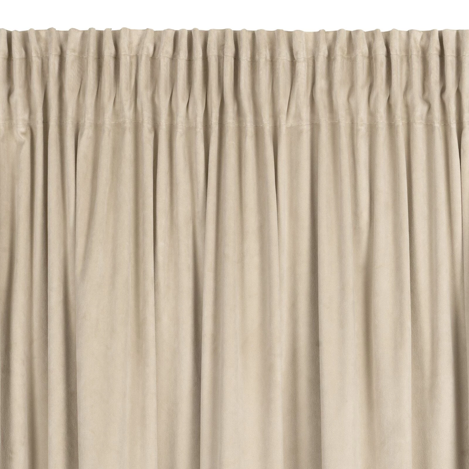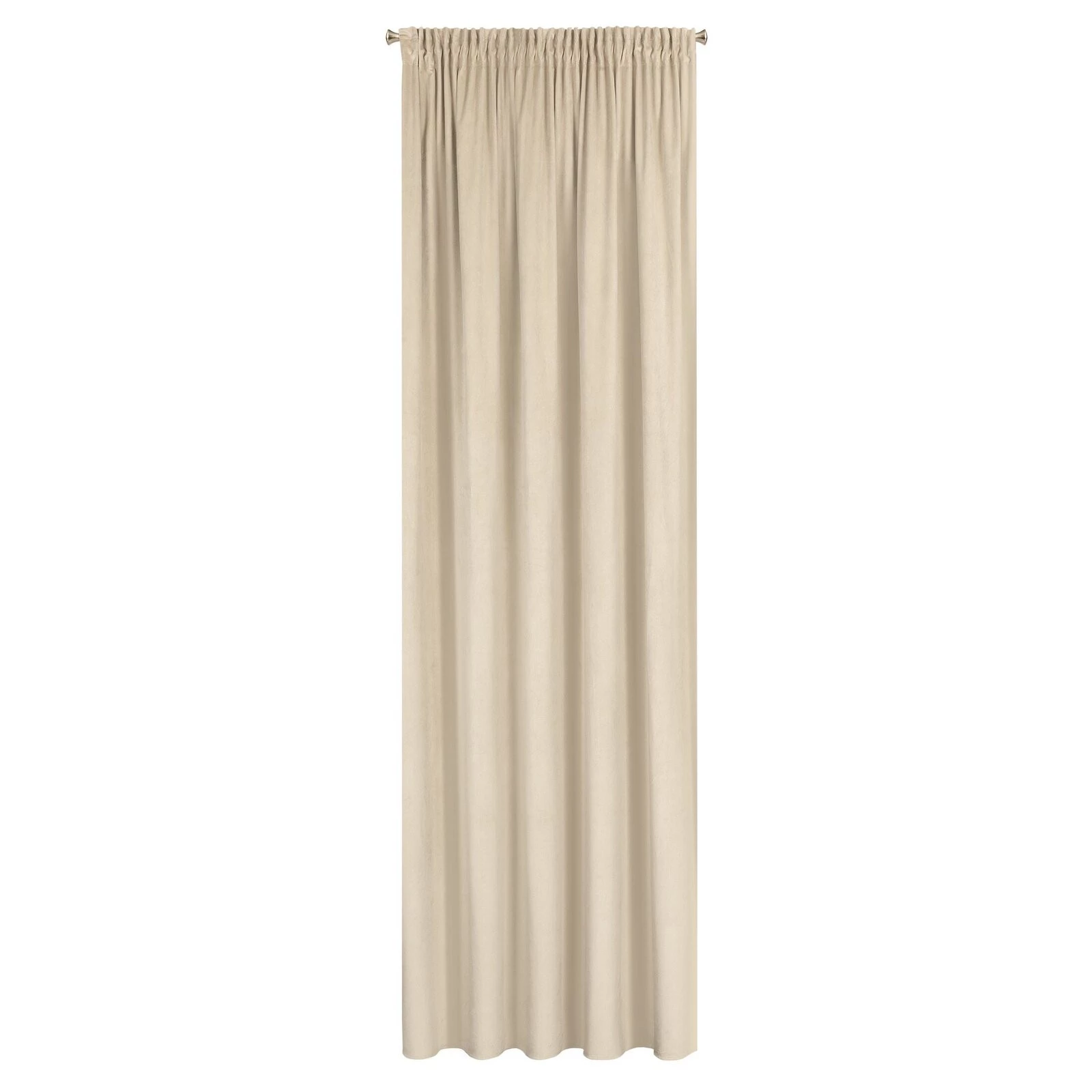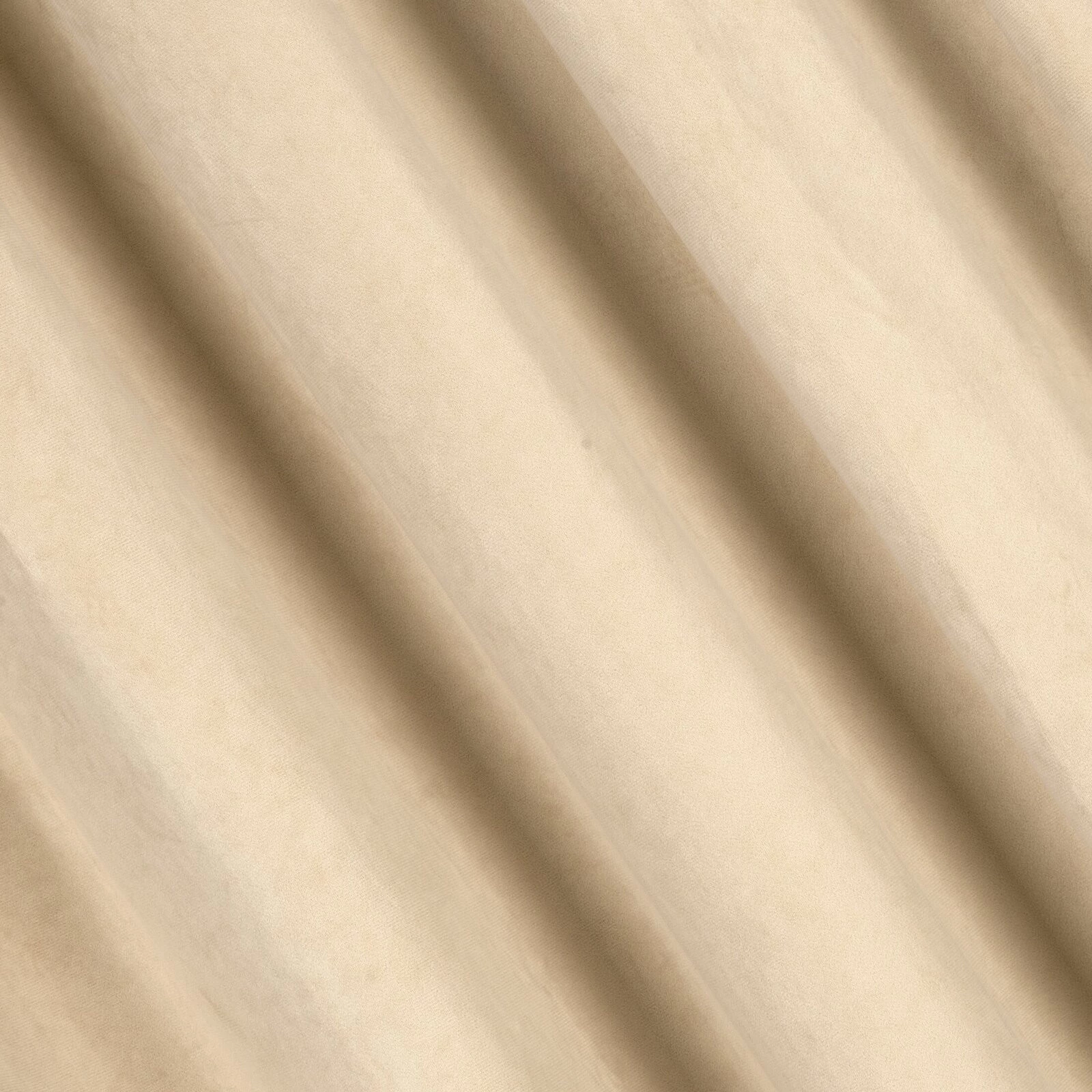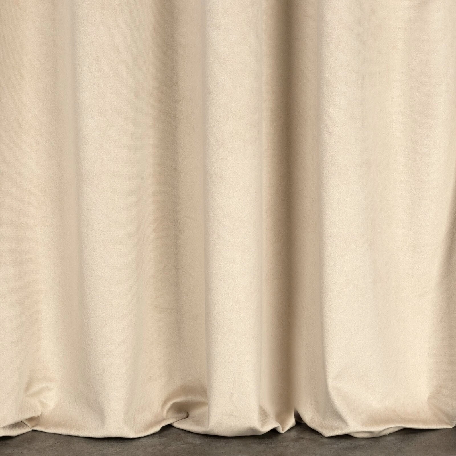 Miękka zasłona gotowa z jednokolorowego aksamitu o charakterystycznym dla welwetu połysku. Mięsista tkanina daje wysoki stopień zaciemnienia wnętrza. szerokość: 140 cm, długość: 300 cm, kolor: kremowy, Gramatura: 215 GSM, Skład: 100% poliester