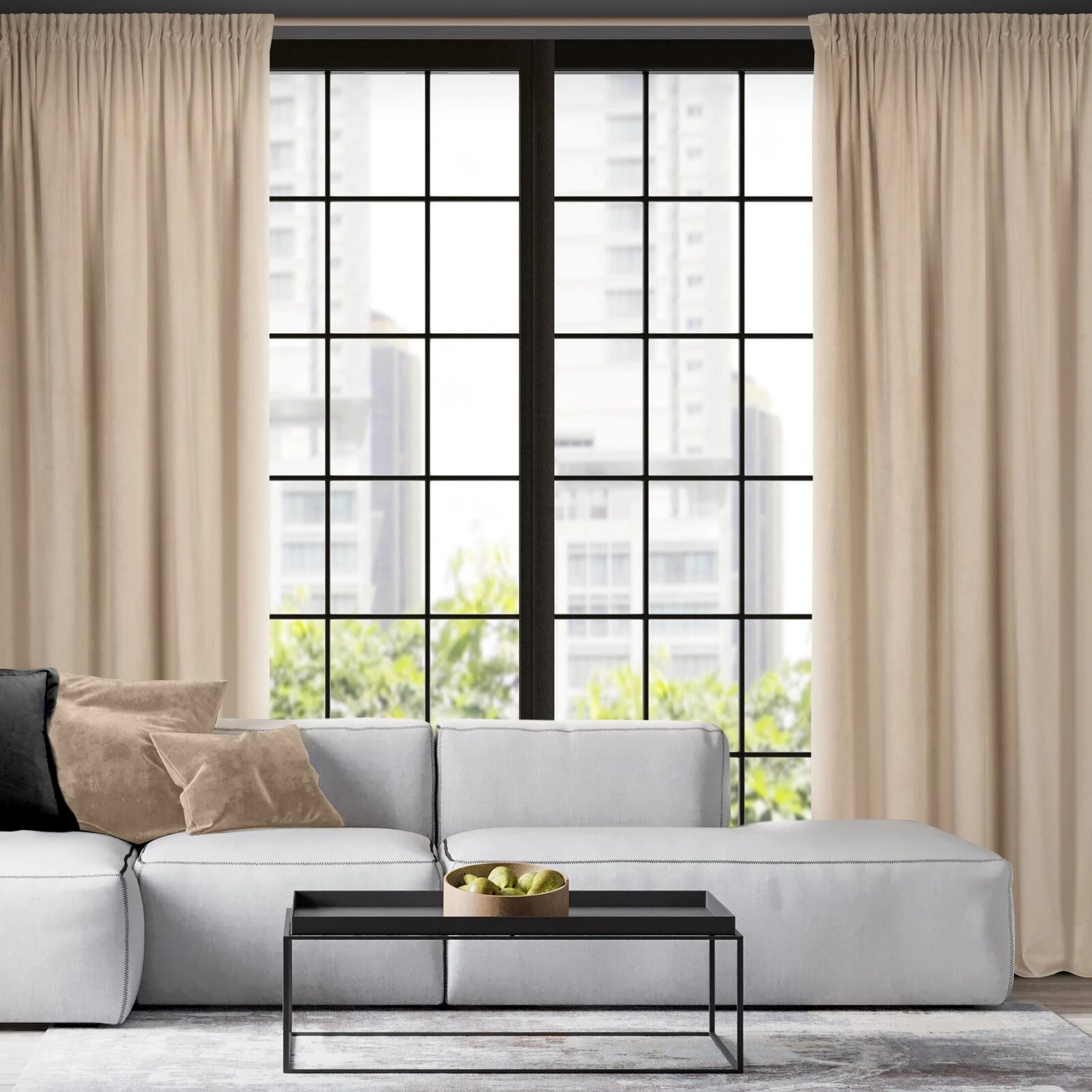 - Miękka zasłona gotowa z jednokolorowego aksamitu o charakterystycznym dla welwetu połysku. Mięsista tkanina daje wysoki stopień zaciemnienia wnętrza. szerokość: 140 cm, długość: 300 cm, kolor: kremowy, Gramatura: 215 GSM, Skład: 100% poliester