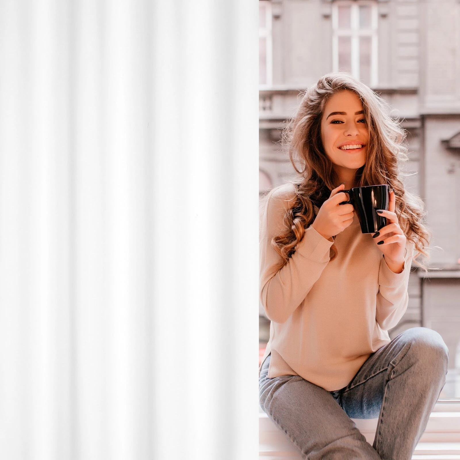 - Elegancka zasłona jednokolorowa z tkaniny o wysokim stopniu zaciemnienia. Mięsisty, matowy materiał bez dekoroacji jest uniwersalnym elementem wystroju wnętrza. szerokość: 135 cm, długość: 270 cm, kolor: biały, Gramatura: 210 GSM, Skład: 100% poliester