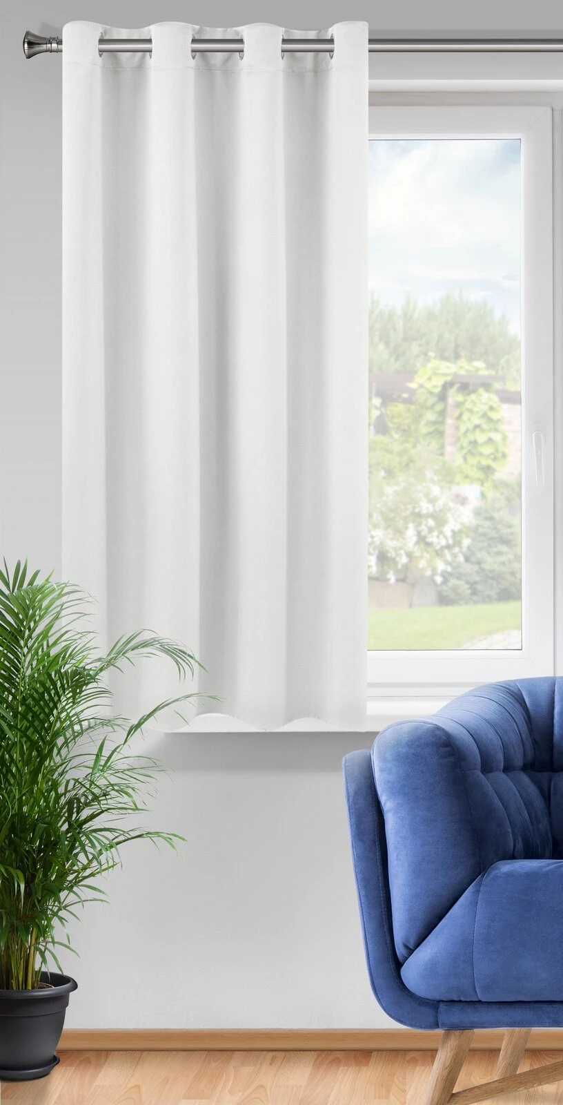 Elegancka zasłona jednokolorowa z tkaniny o wysokim stopniu zaciemnienia. Mięsisty, matowy materiał bez dekoroacji jest uniwersalnym elementem wystroju wnętrza. szerokość: 140 cm, długość: 175 cm, kolor: biały, Gramatura: 210 GSM, Skład: 100% poliester