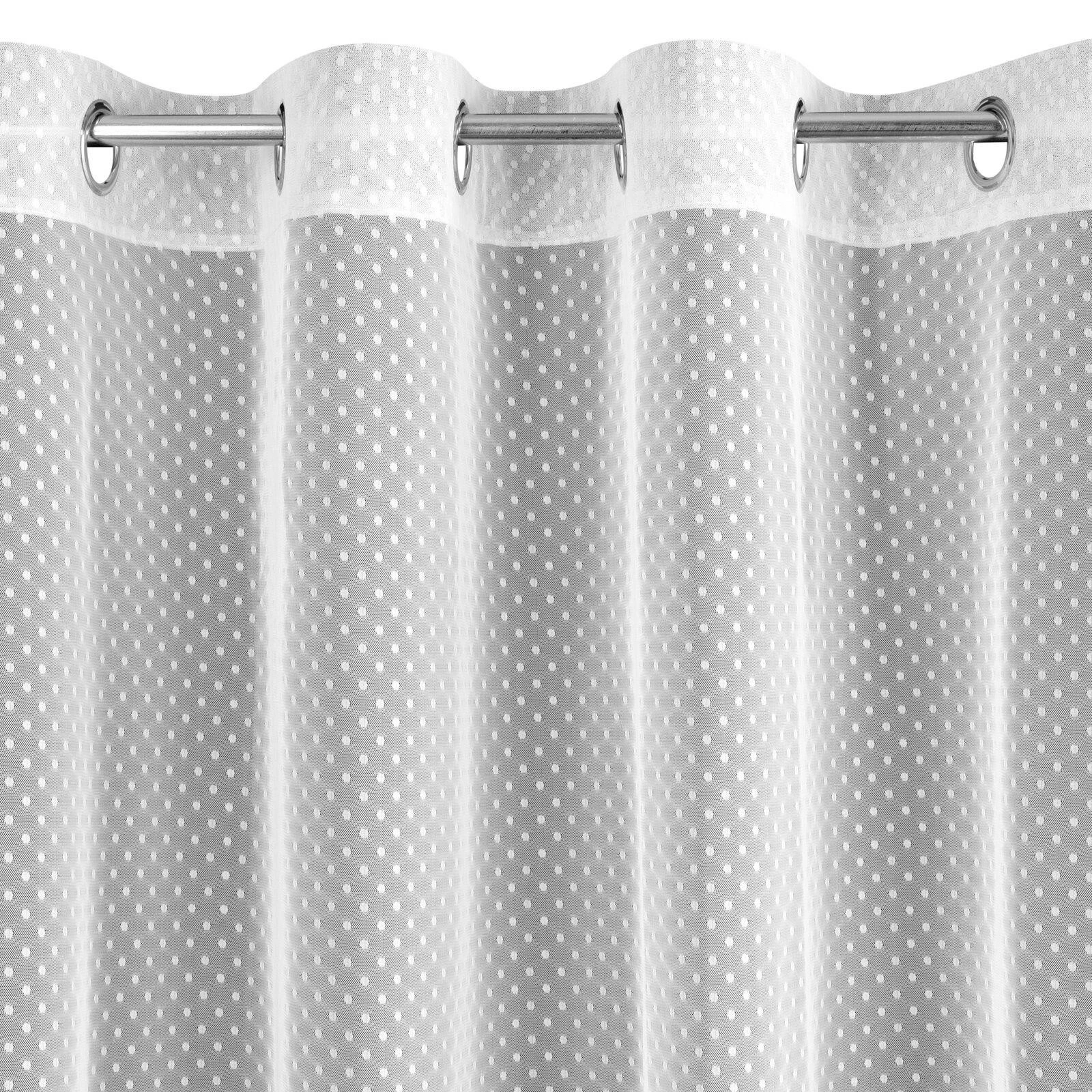 - Firana gotowa zdobiona kropkami szerokość: 140 cm, długość: 250 cm, kolor: biały, Gramatura: 40 GSM, Skład: 100% poliester