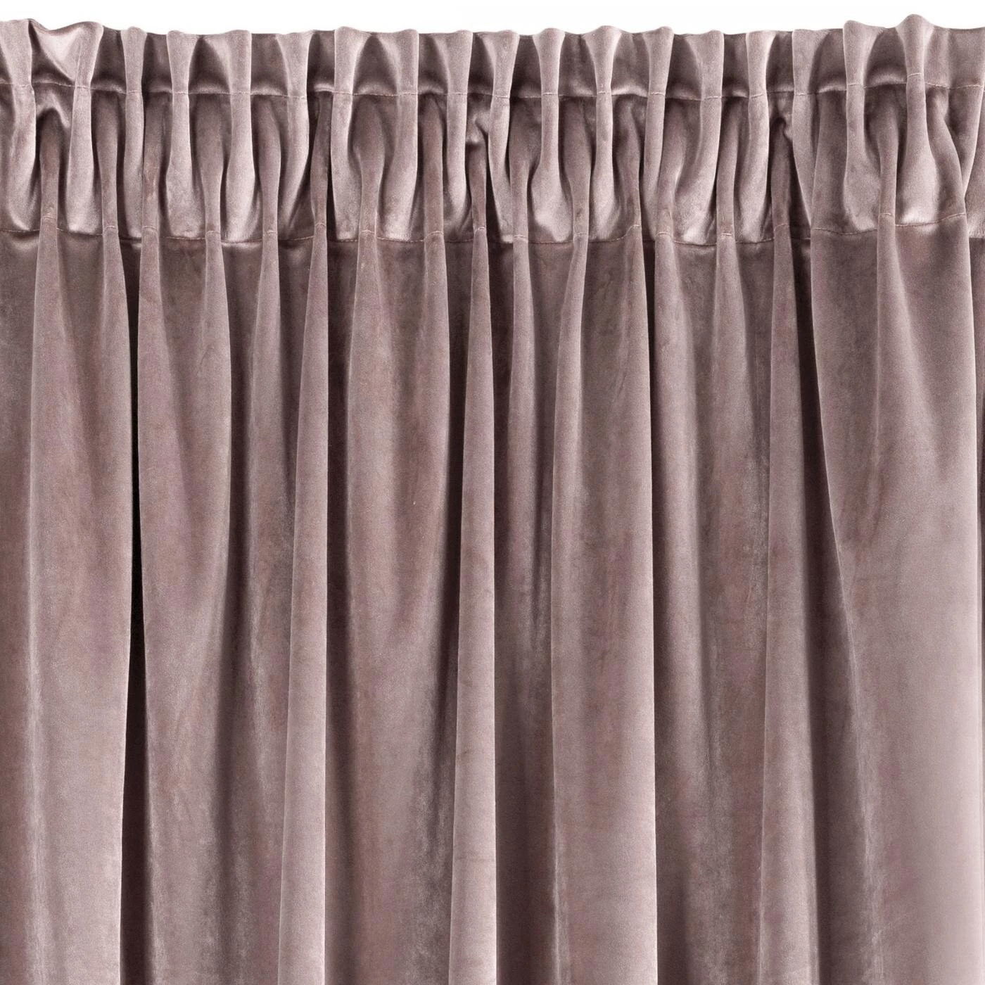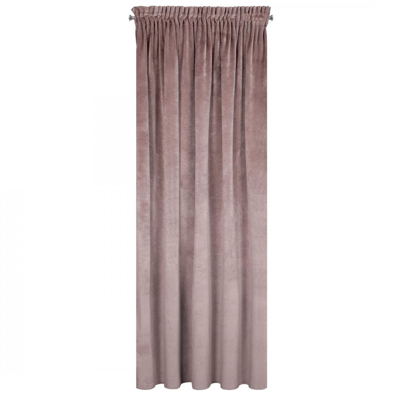 Gładka, jednokolorowa zasłona z miękkiego welwetu o charakterystycznym dla aksamitu połysku. Taśma marszcząca zawiera tunel do upięć na karniszu drążkowym. szerokość: 140 cm, długość: 270 cm, kolor: pudrowy róż, Gramatura: 290 GSM, Skład: 100% poliester