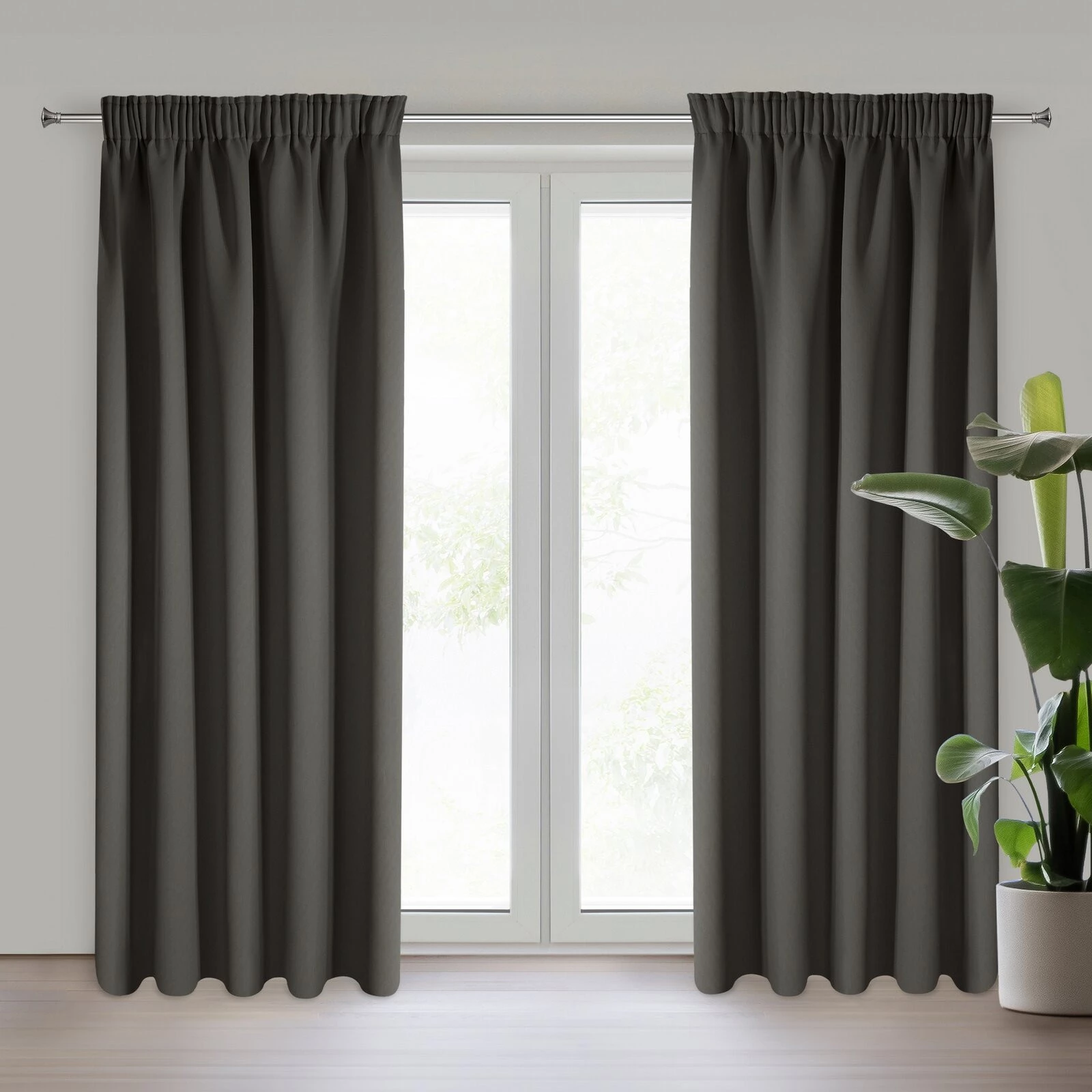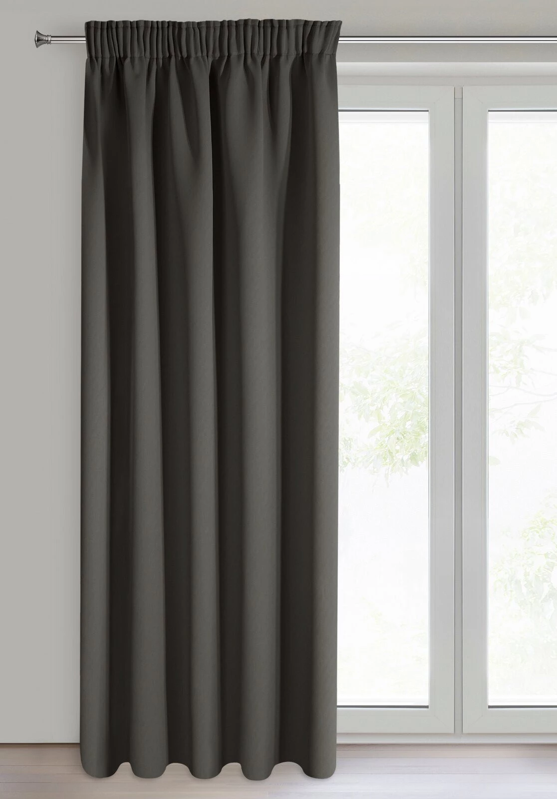 Elegancka zasłona jednokolorowa z tkaniny o wysokim stopniu zaciemnienia. Mięsisty, matowy materiał bez dekoroacji jest uniwersalnym elementem wystroju wnętrza. szerokość: 135 cm, długość: 270 cm, kolor: grafitowy, Gramatura: 210 GSM, Skład: 100% poliester
