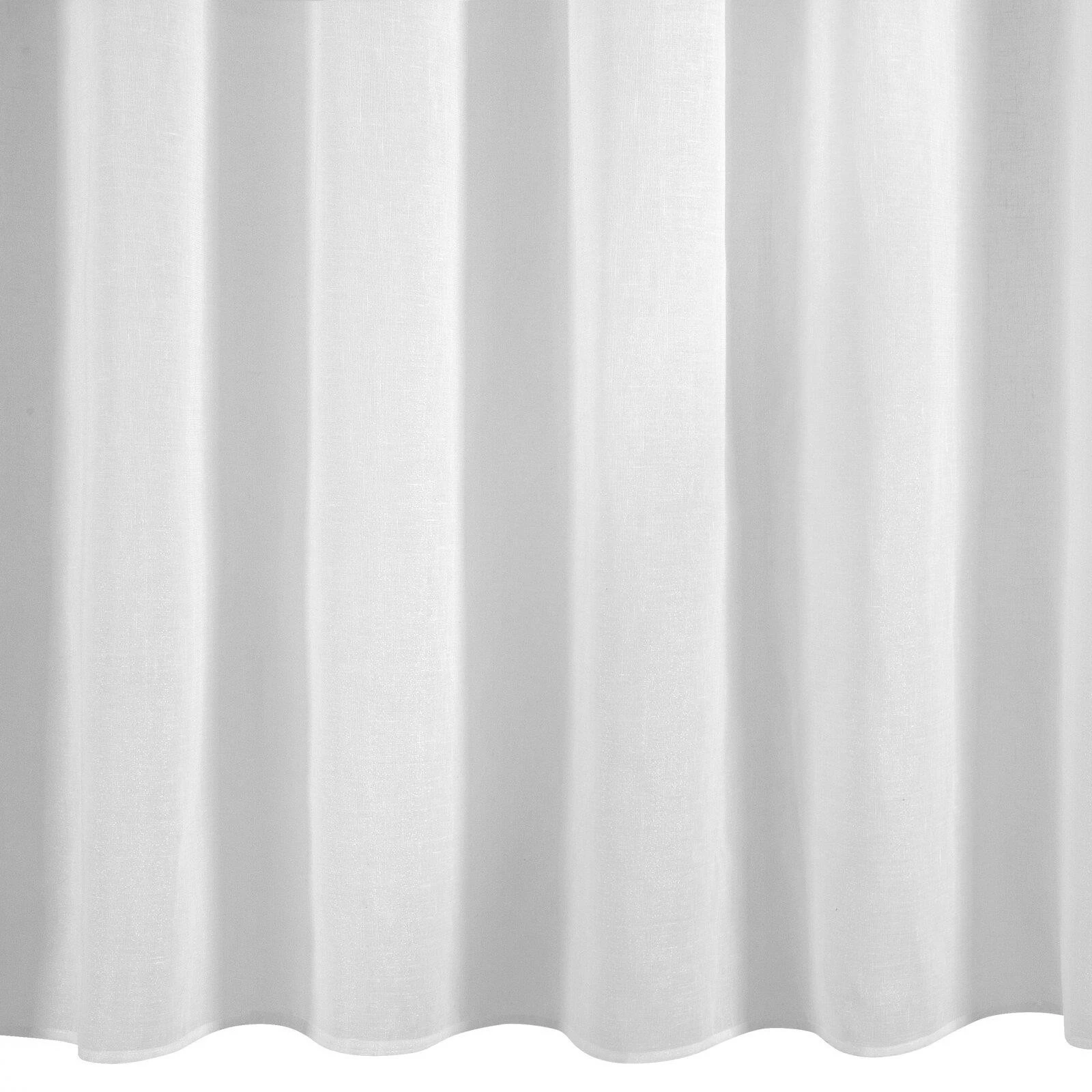 Delikatna firana w pięknym kolorze uszyta z tkaniny o strukturze drobnego deszczyku doskonale przepuszcza światło. Łatwa w prasowaniu i praniu dekoracja. szerokość: 300 cm, długość: 145 cm, kolor: biały, Gramatura: 90 GSM, Skład: 100% poliester