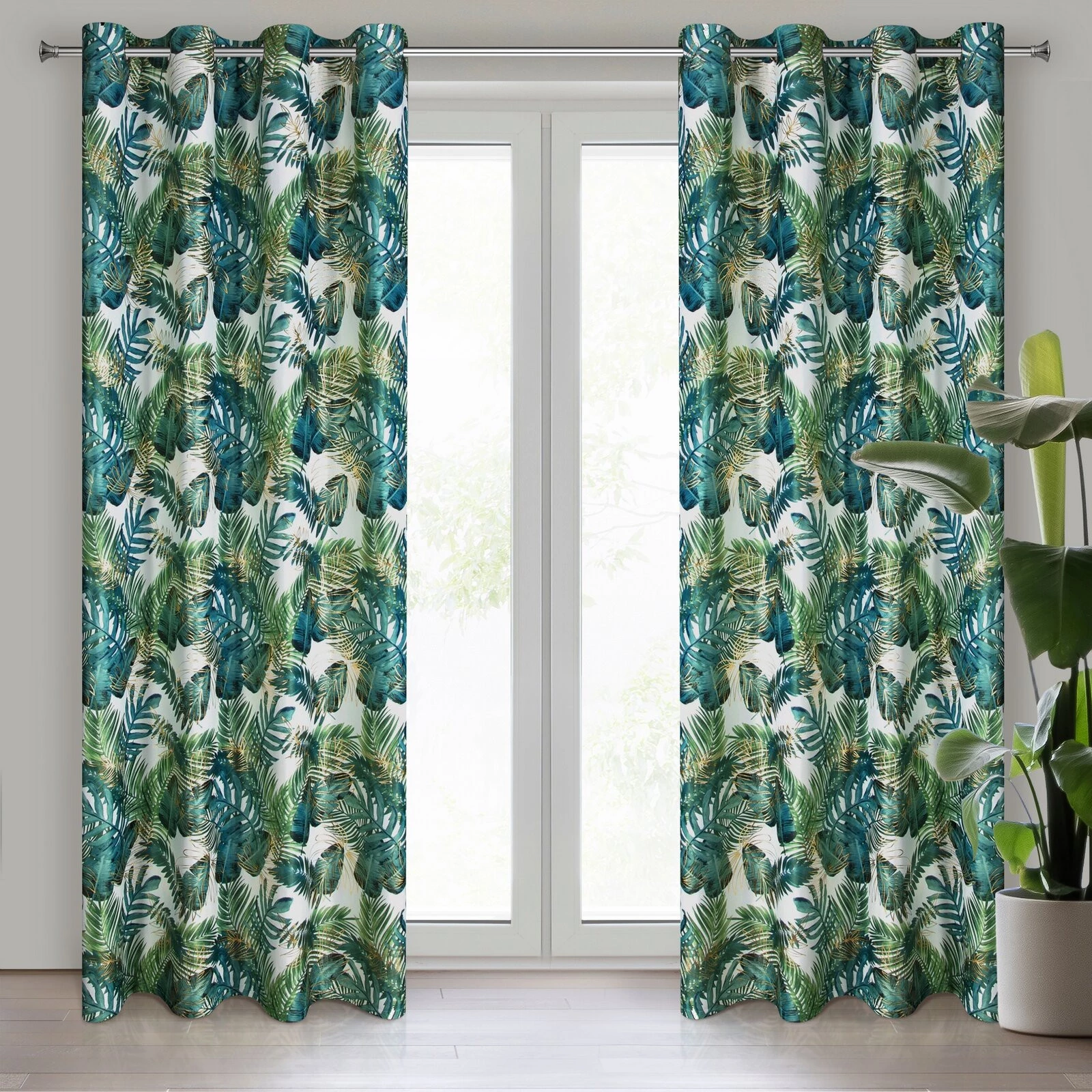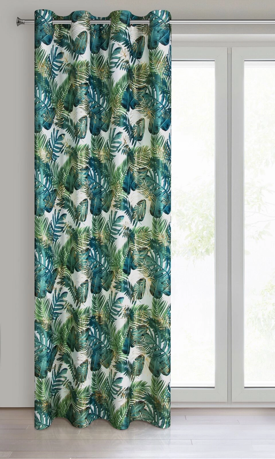 - Zasłona welwetowa ze złotym nadrukiem szerokość: 140 cm, długość: 250 cm, kolor: biały, Gramatura: 200 GSM, Skład: 100% poliester