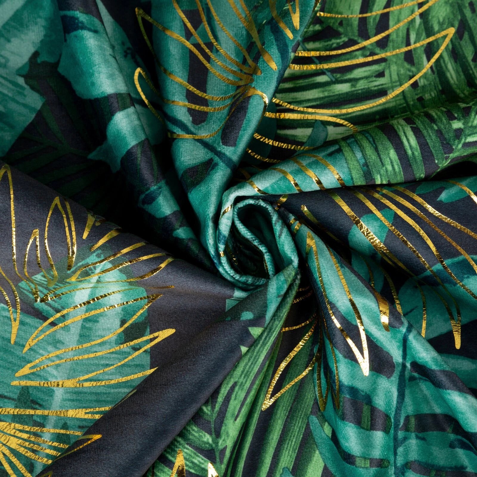 Zasłona welwetowa ze złotym nadrukiem szerokość: 140 cm, długość: 250 cm, kolor: czarny, Gramatura: 200 GSM, Skład: 100% poliester