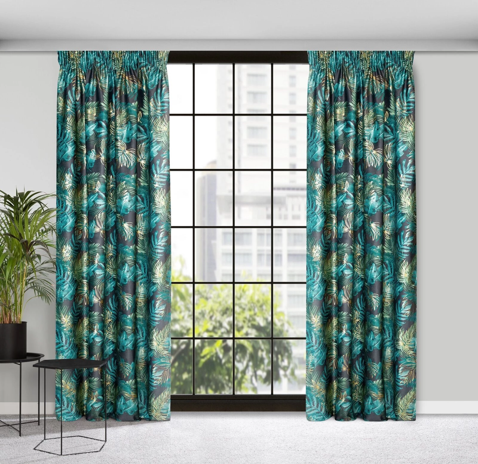 - Zasłona welwetowa ze złotym nadrukiem szerokość: 140 cm, długość: 270 cm, kolor: czarny, Gramatura: 200 GSM, Skład: 100% poliester