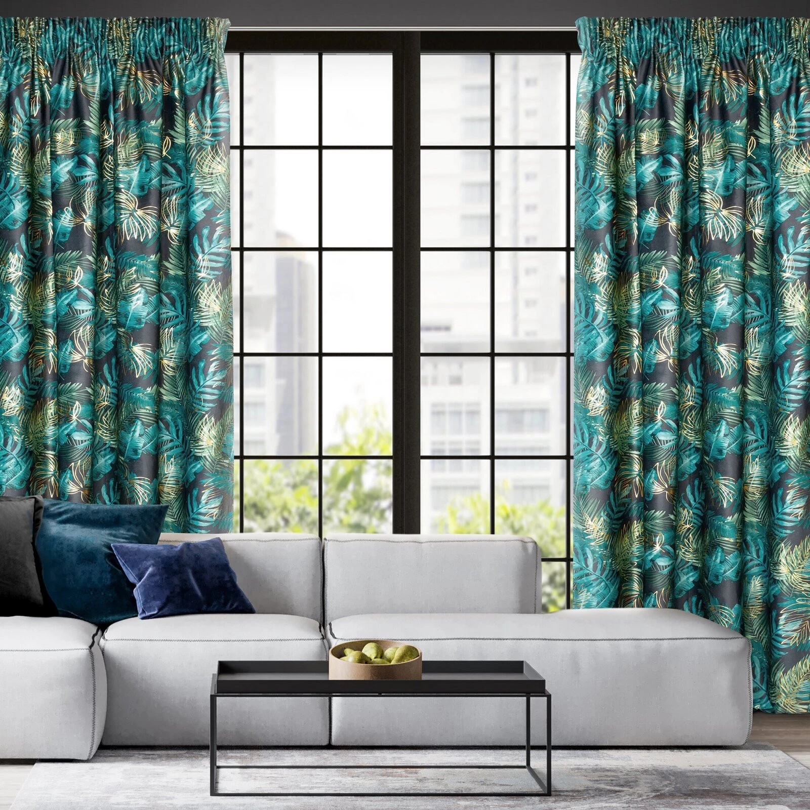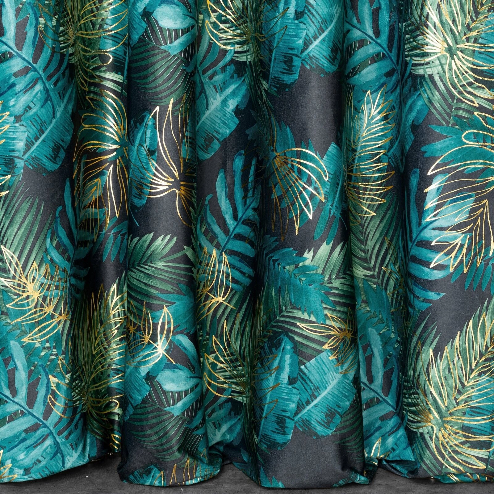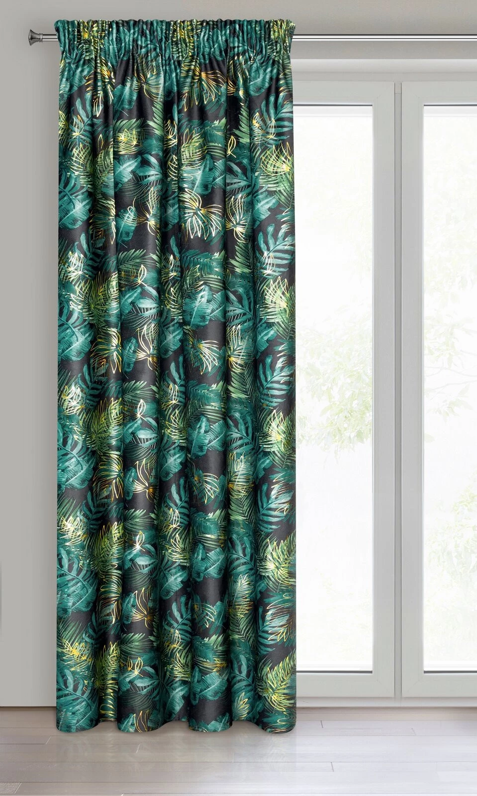 Zasłona welwetowa ze złotym nadrukiem szerokość: 140 cm, długość: 270 cm, kolor: czarny, Gramatura: 200 GSM, Skład: 100% poliester