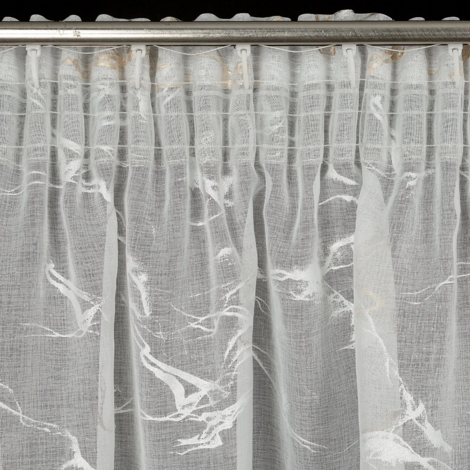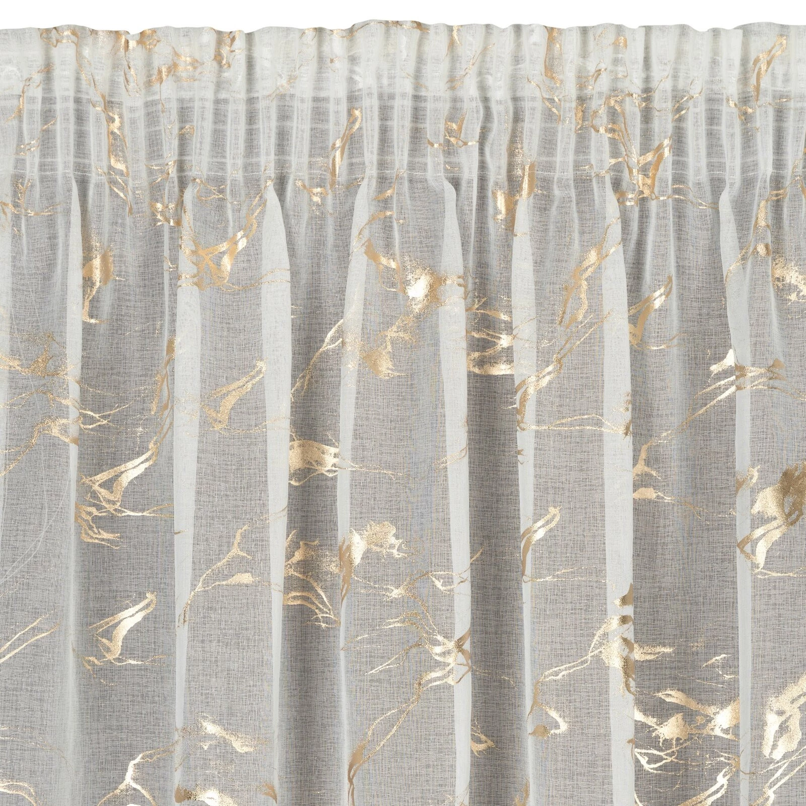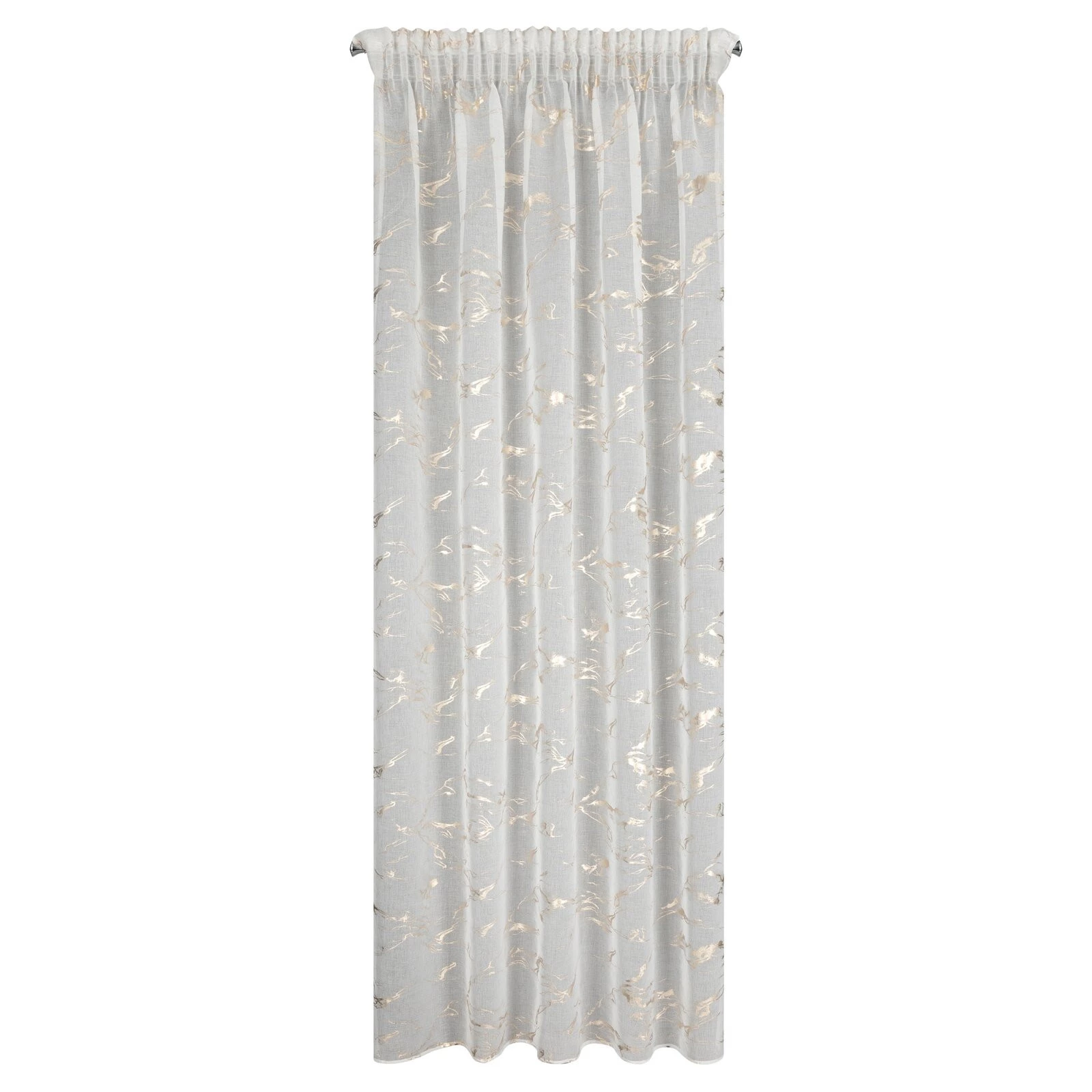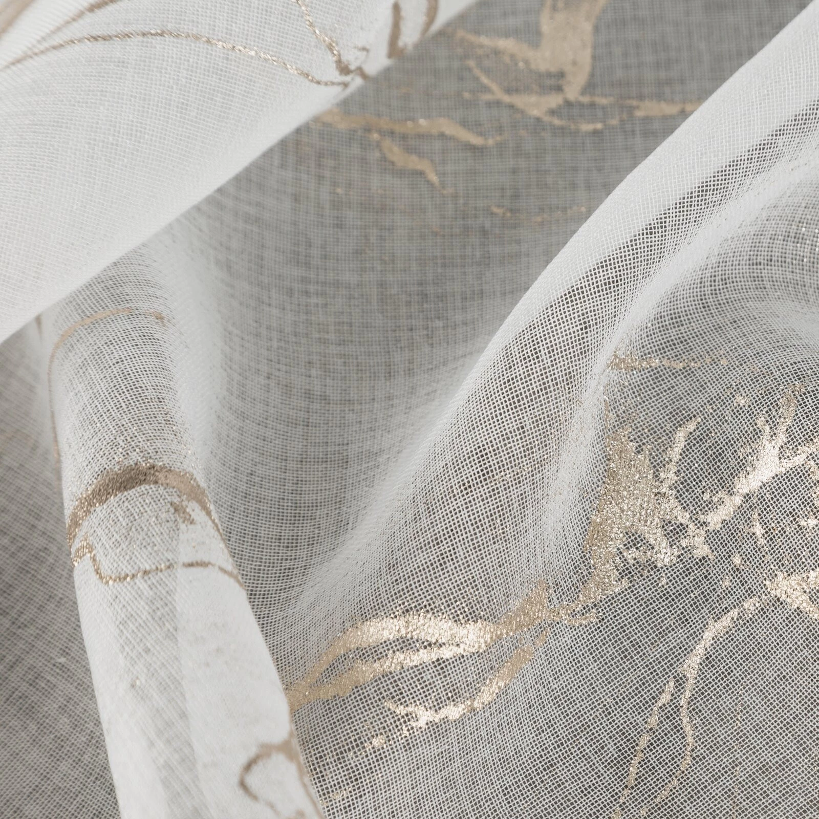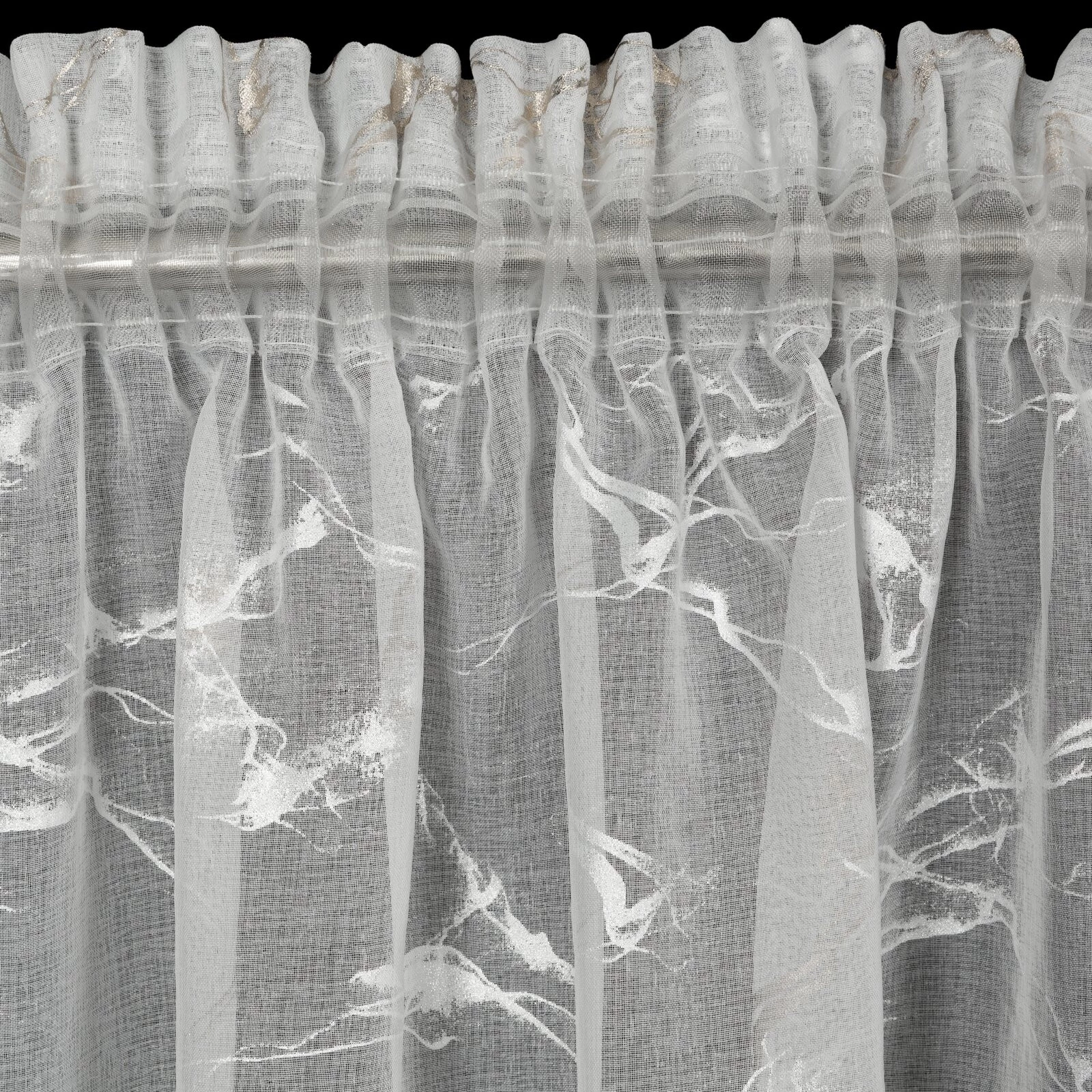 Firana gotowa ze złotym nadrukiem szerokość: 140 cm, długość: 270 cm, kolor: biały, Gramatura: 72 GSM, Skład: 100% poliester