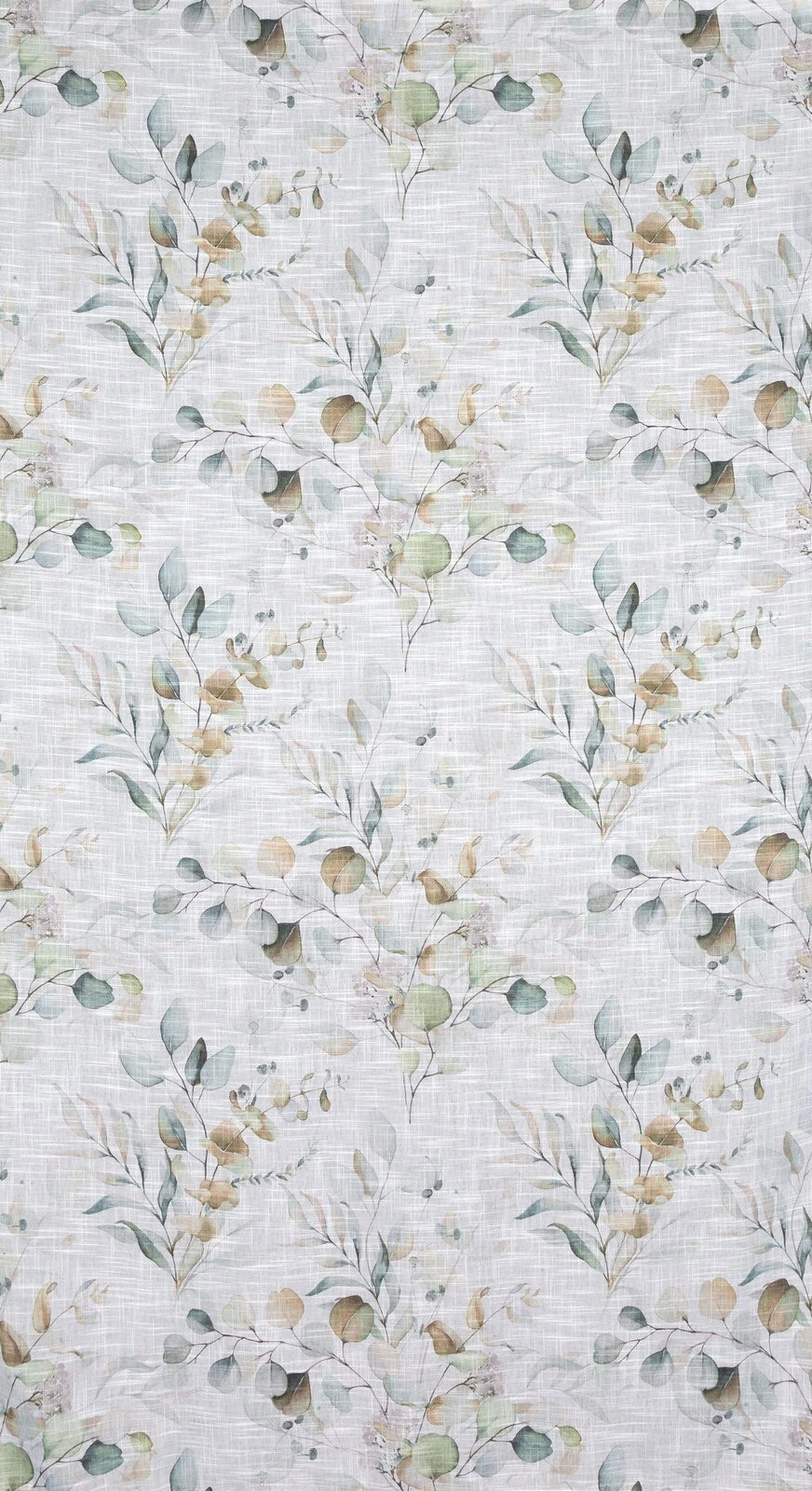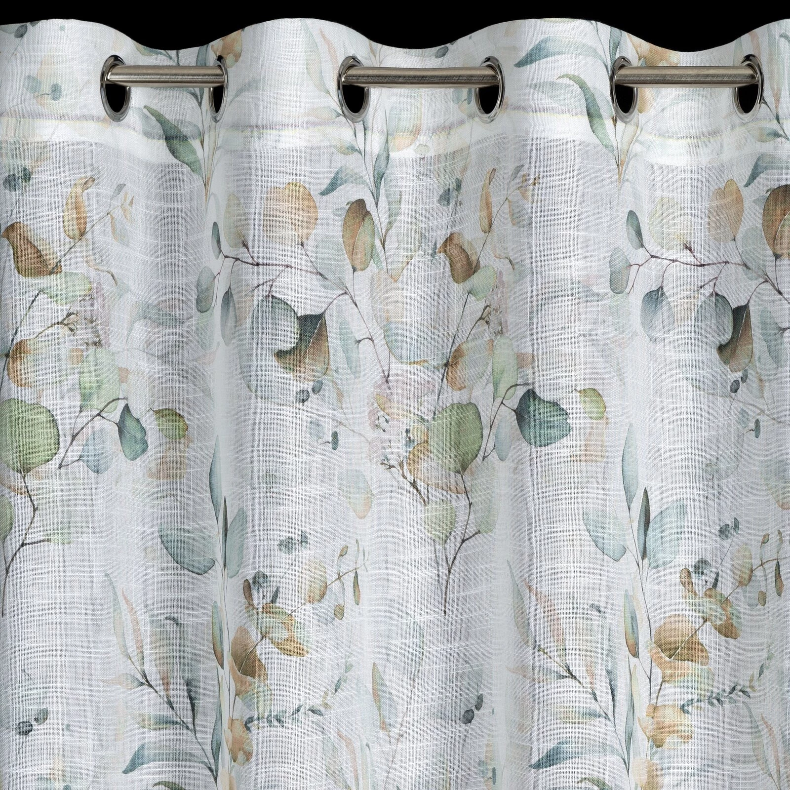 Zasłona gotowa z tkaniny w stylu eko, z nadrukiem w liście szerokość: 140 cm, długość: 250 cm, kolor: biały, Gramatura: 160 GSM, Skład: 100% poliester