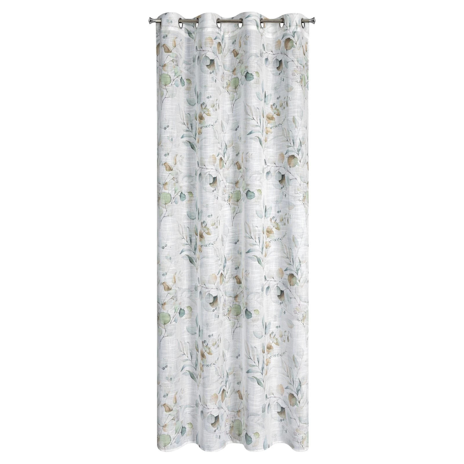 - Zasłona gotowa z tkaniny w stylu eko, z nadrukiem w liście szerokość: 140 cm, długość: 250 cm, kolor: biały, Gramatura: 160 GSM, Skład: 100% poliester