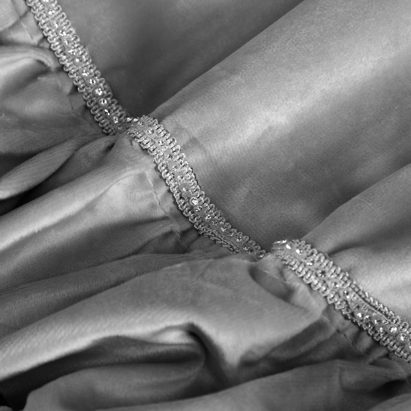 - Zasłona gotowa welwetowa z falbanami i ozdobnymi cyrkoniami szerokość: 140 cm, długość: 270 cm, kolor: srebrny, Gramatura: 200 GSM, Skład: 100% poliester
