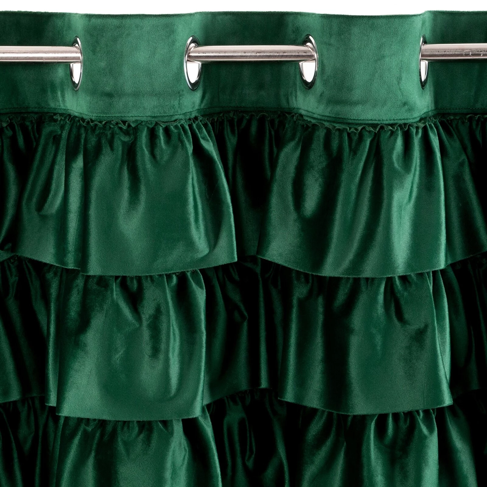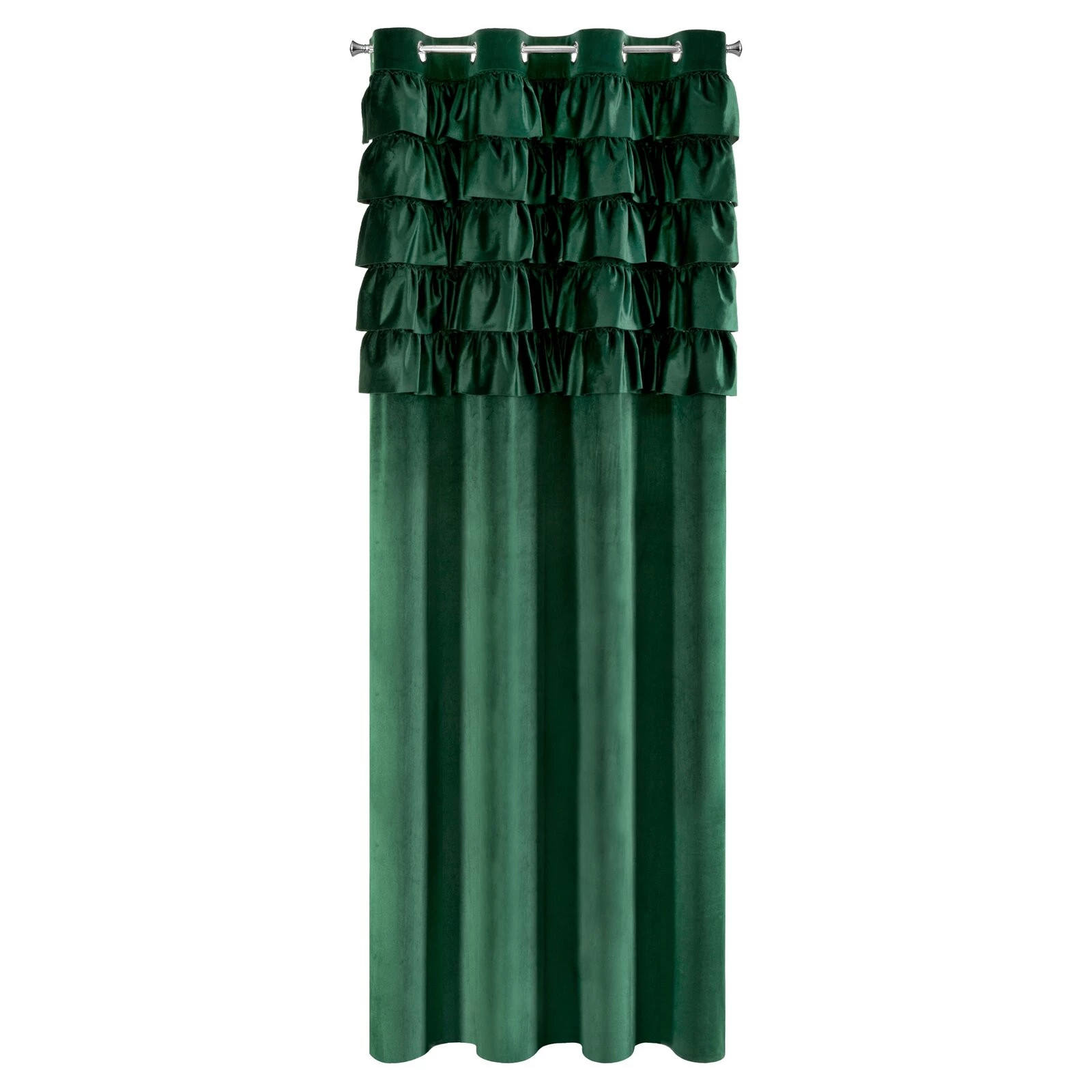 - Zasłona gotowa welwetowa z falbanami od góry szerokość: 140 cm, długość: 250 cm, kolor: ciemnozielony, Gramatura: 200 GSM, Skład: 100% poliester