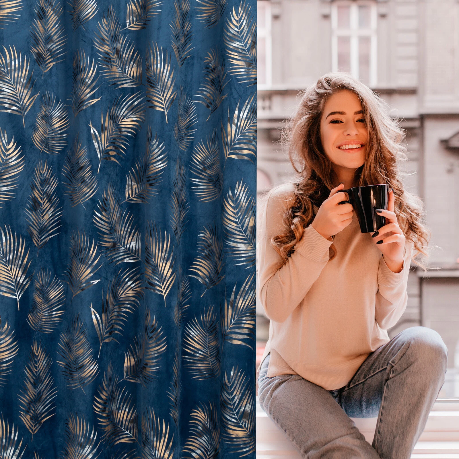 - Zasłona welwetowa z cieniowanym błyszczącym nadrukiem szerokość: 140 cm, długość: 250 cm, kolor: granatowy, Gramatura: 200 GSM, Skład: 100% poliester