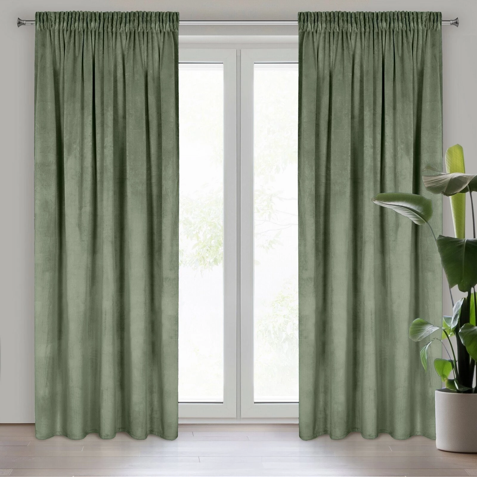 Zasłona welwetowa jednokolorowa szerokość: 140 cm, długość: 270 cm, kolor: oliwkowy, Gramatura: 200 GSM, Skład: 100% poliester