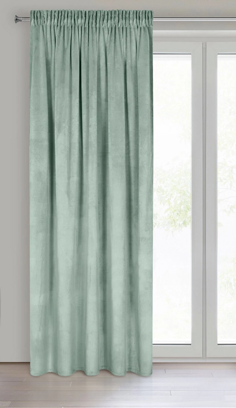 - Zasłona welwetowa jednokolorowa szerokość: 140 cm, długość: 270 cm, kolor: jasnomiętowy, Gramatura: 200 GSM, Skład: 100% poliester