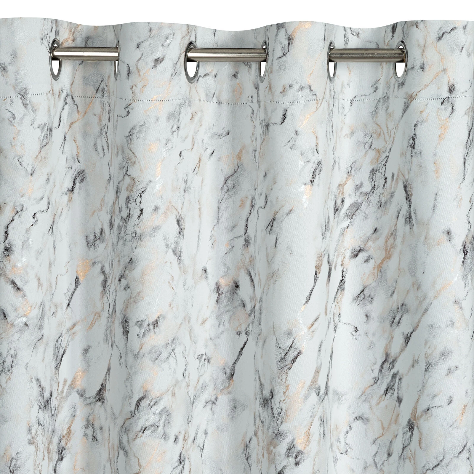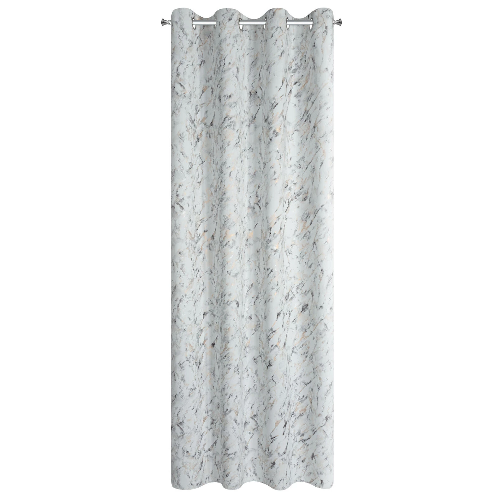 - Zasłona zaciemniająca z nadrukiem błyszczącym szerokość: 140 cm, długość: 250 cm, kolor: srebrny, Gramatura: 210 GSM, Skład: 100% poliester