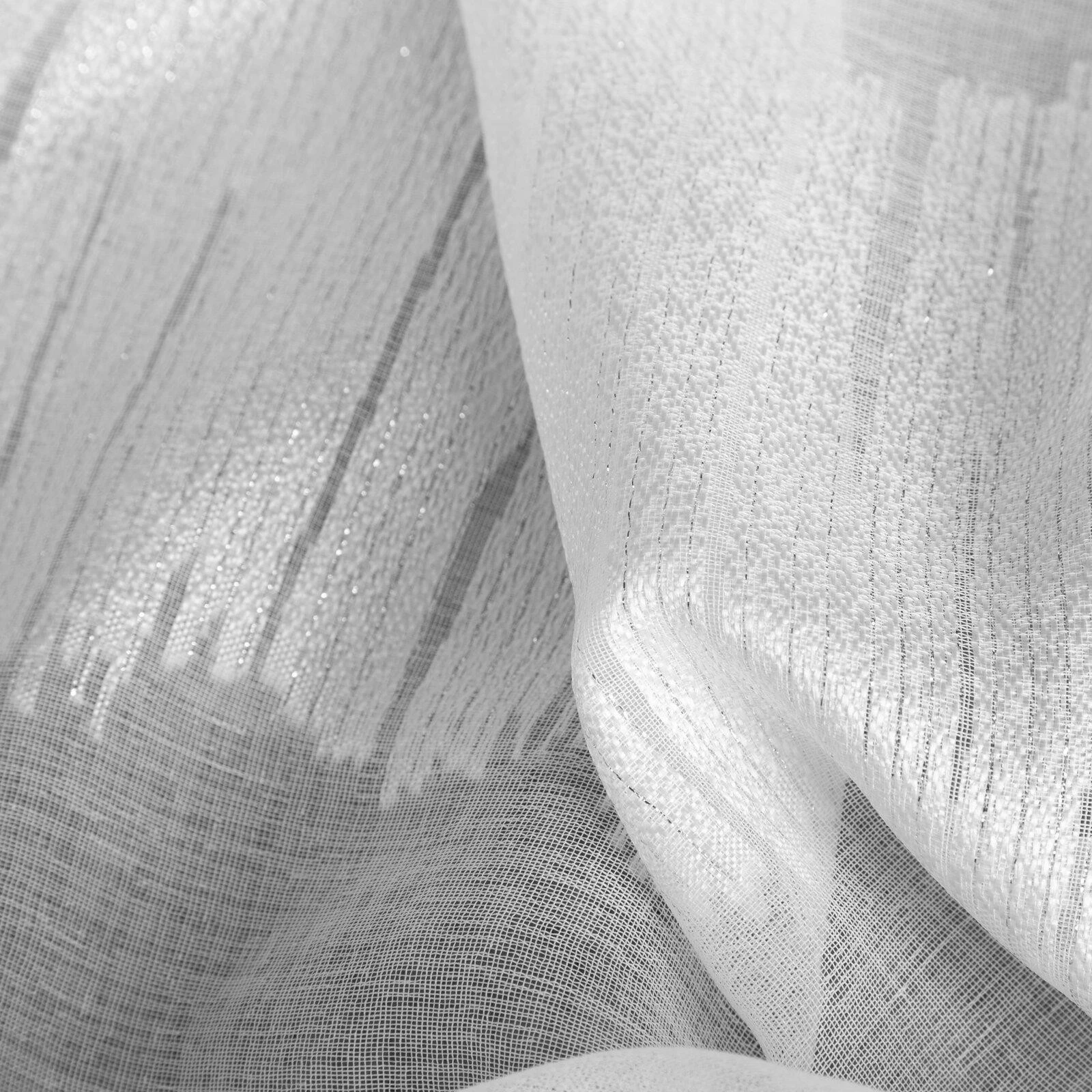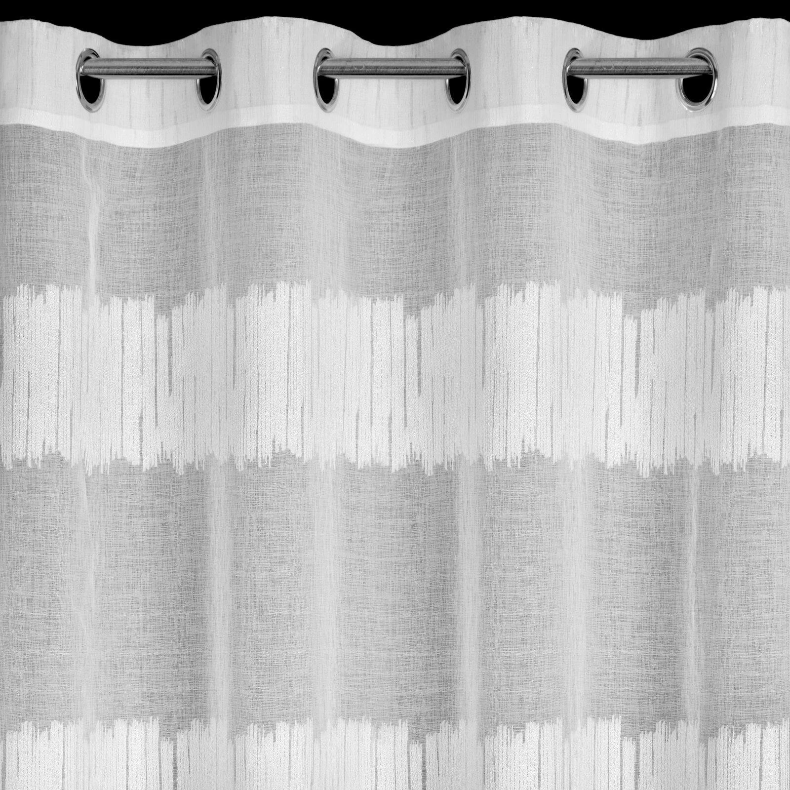 - Firana gotowa zdobiona żakardowymi pasami szerokość: 140 cm, długość: 250 cm, kolor: biały, Gramatura: 70 GSM, Skład: 100% poliester