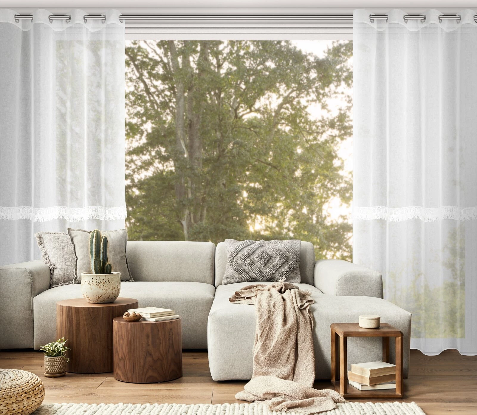 Firana gotowa z ozdobną obszywką z frędzlami szerokość: 140 cm, długość: 250 cm, kolor: biały, Skład: 100% poliester