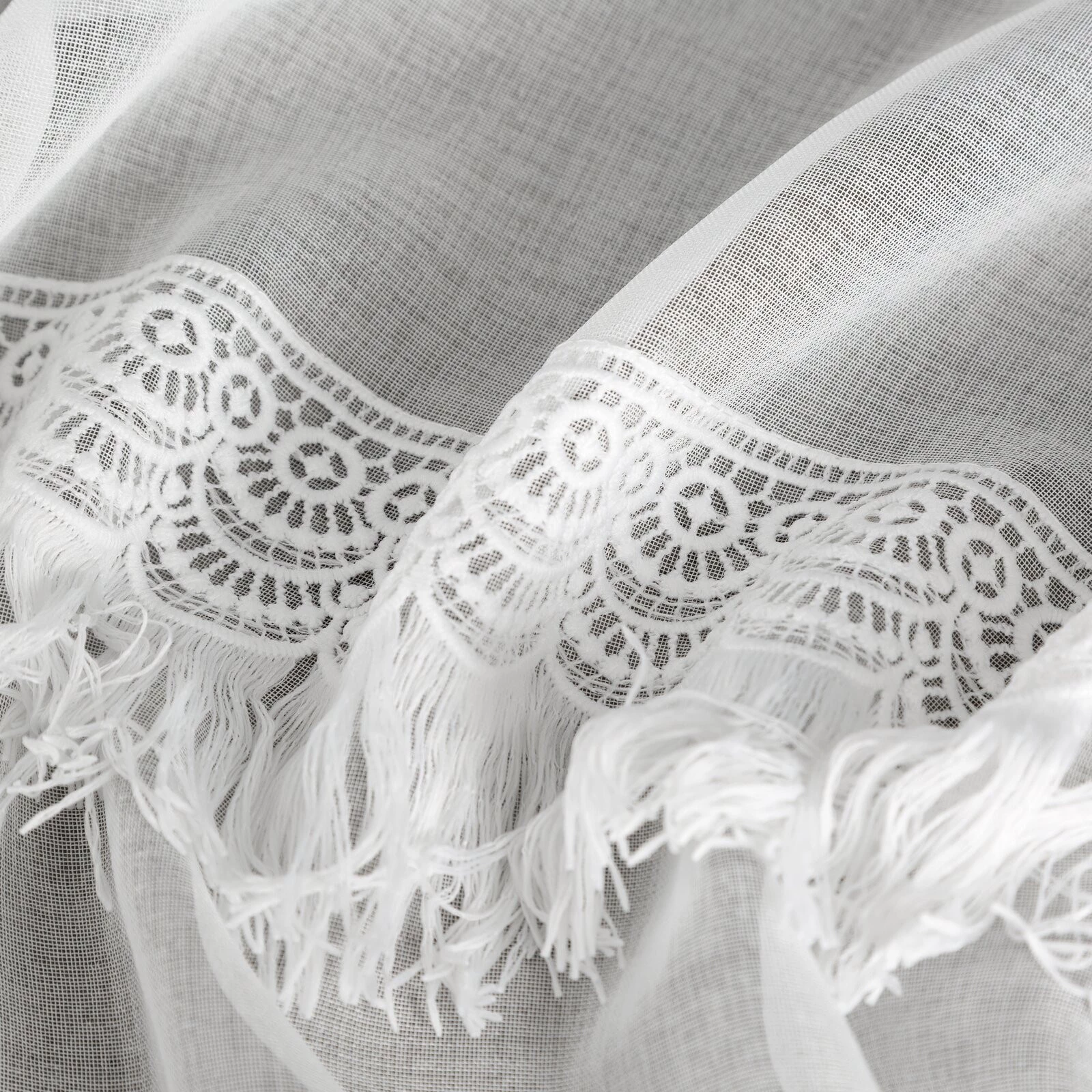 - Firana gotowa z ozdobną obszywką z frędzlami szerokość: 140 cm, długość: 250 cm, kolor: biały, Skład: 100% poliester