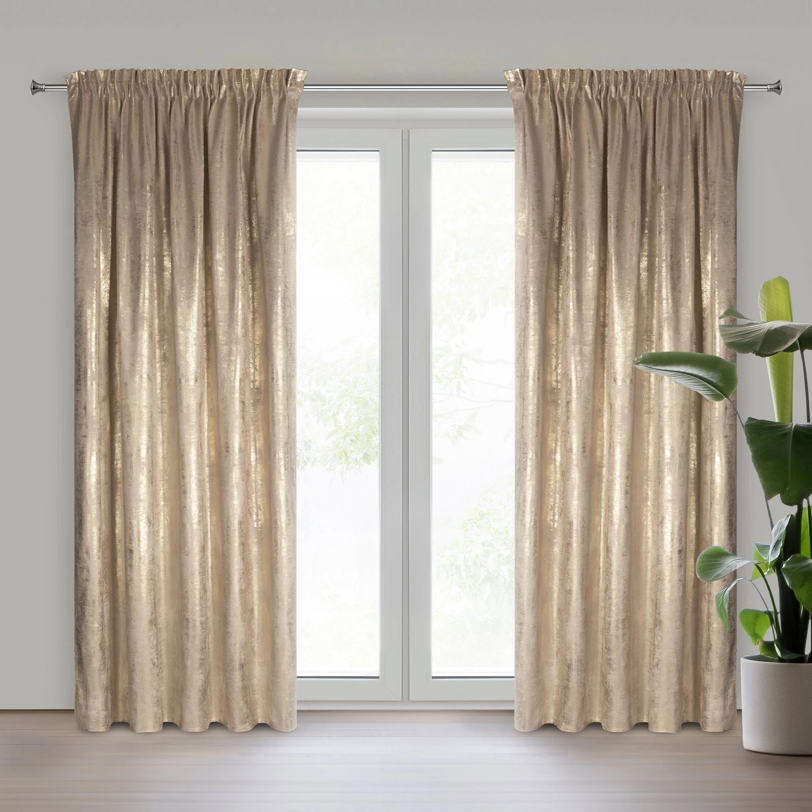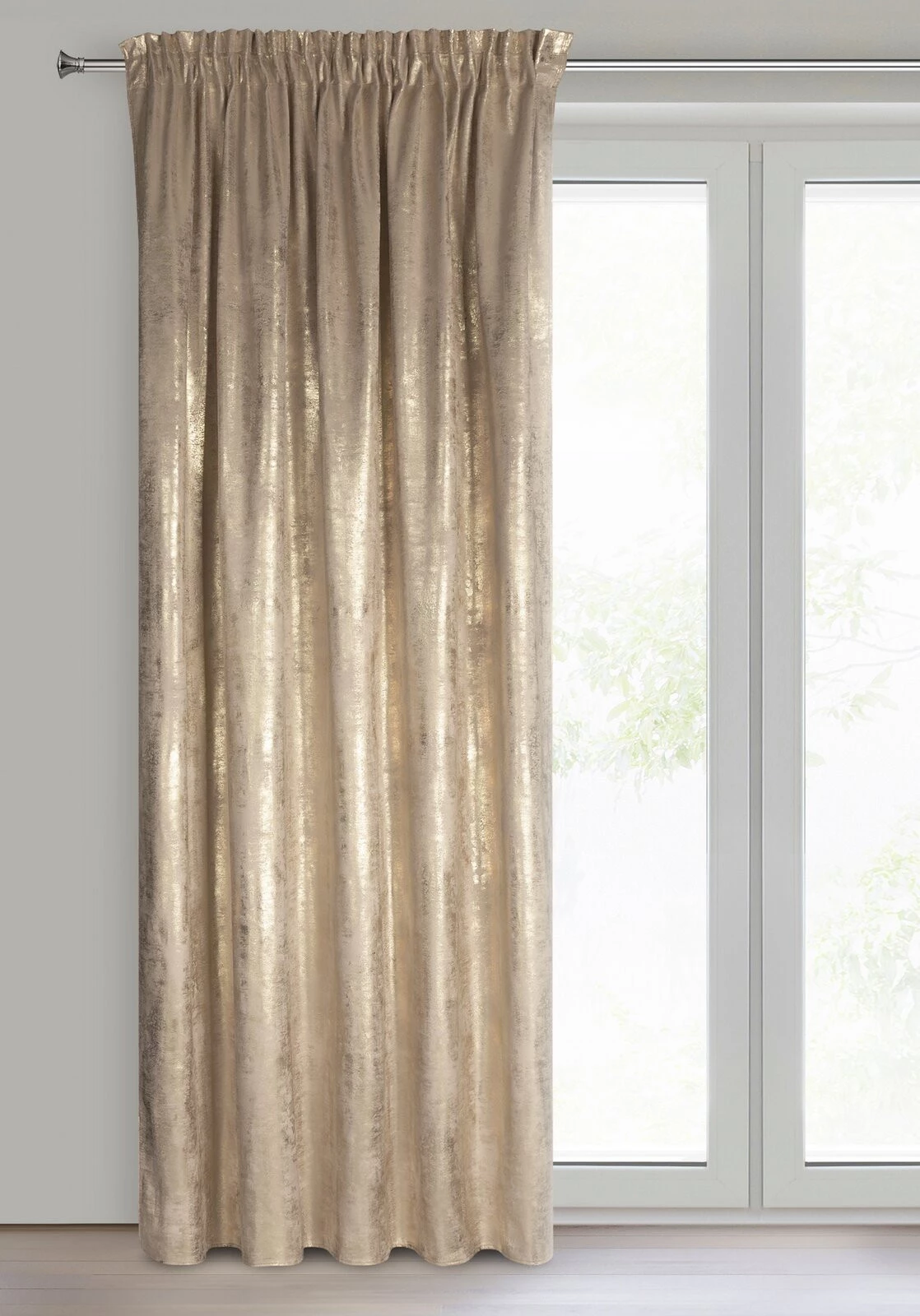Zasłona gotowa welwetowa z błyszczącym nadrukiem szerokość: 140 cm, długość: 270 cm, kolor: beżowy, Gramatura: 200 GSM, Skład: 100% poliester