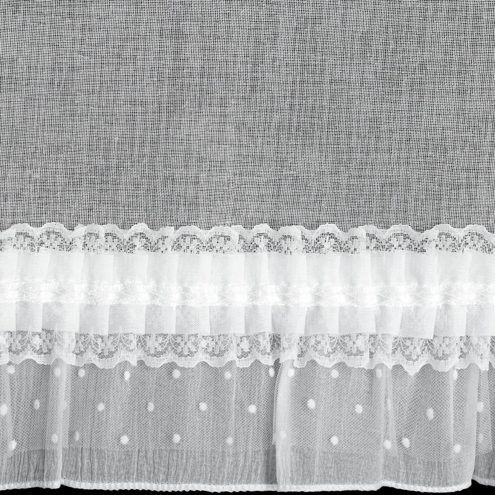 Firana gotowa z ozdobną obszywką szerokość: 150 cm, długość: 30 cm, kolor: biały, Skład: 100% poliester