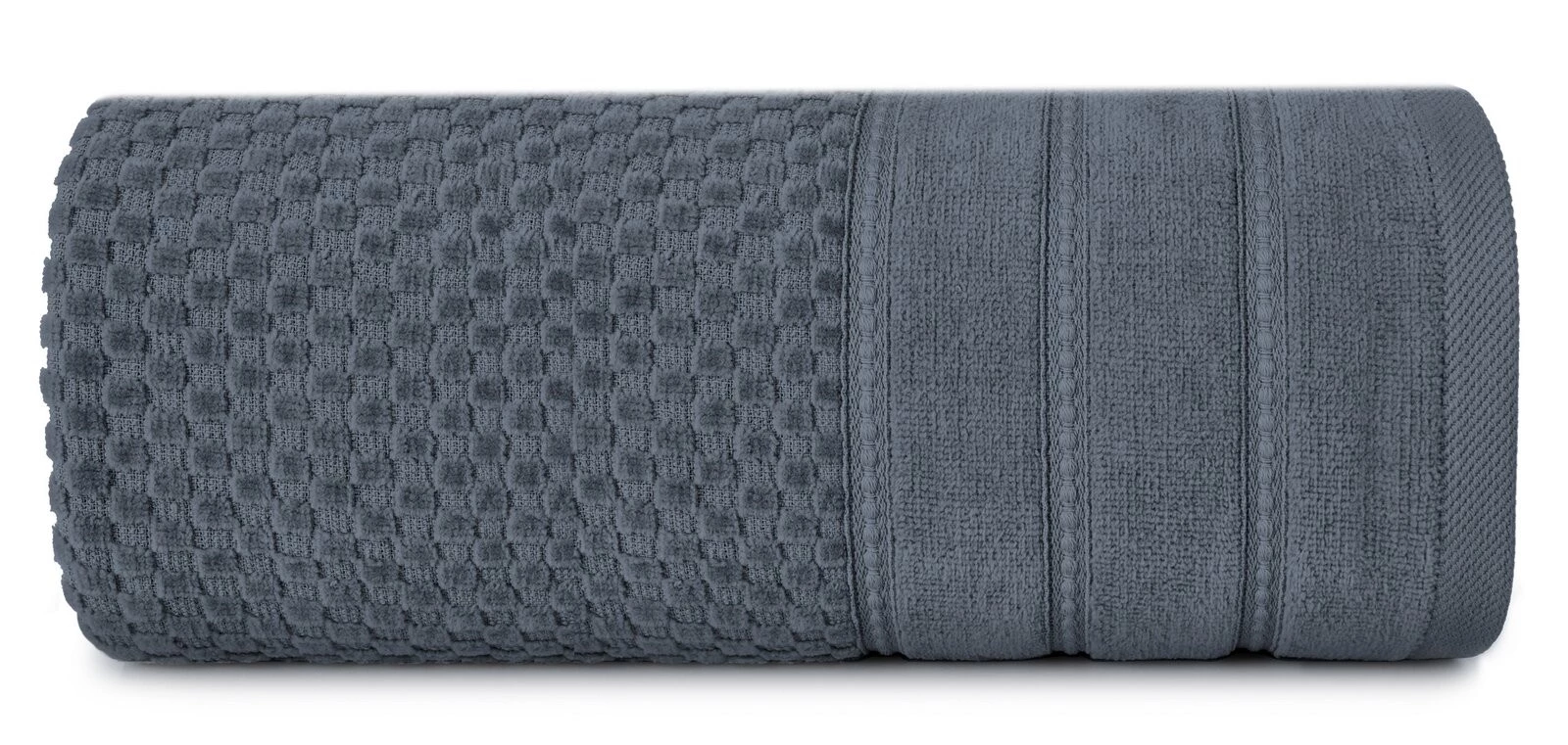 Ręcznik bawełniany o strukturze krateczki ze stebnowaniem szerokość: 70 cm, długość: 140 cm, kolor: stalowy, Gramatura: 500 GSM, Skład: 100% bawełna