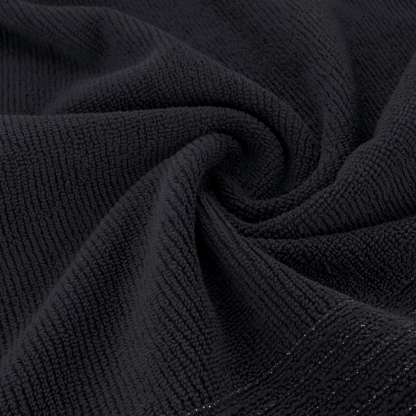Ręcznik bawełniany z ozdobną bordiurą przetykaną błyszczącą nicią szerokość: 50 cm, długość: 90 cm, kolor: czarny, Gramatura: 500 GSM, Skład: 100% bawełna; część ozdobna: 95% bawełna, 5% poliester