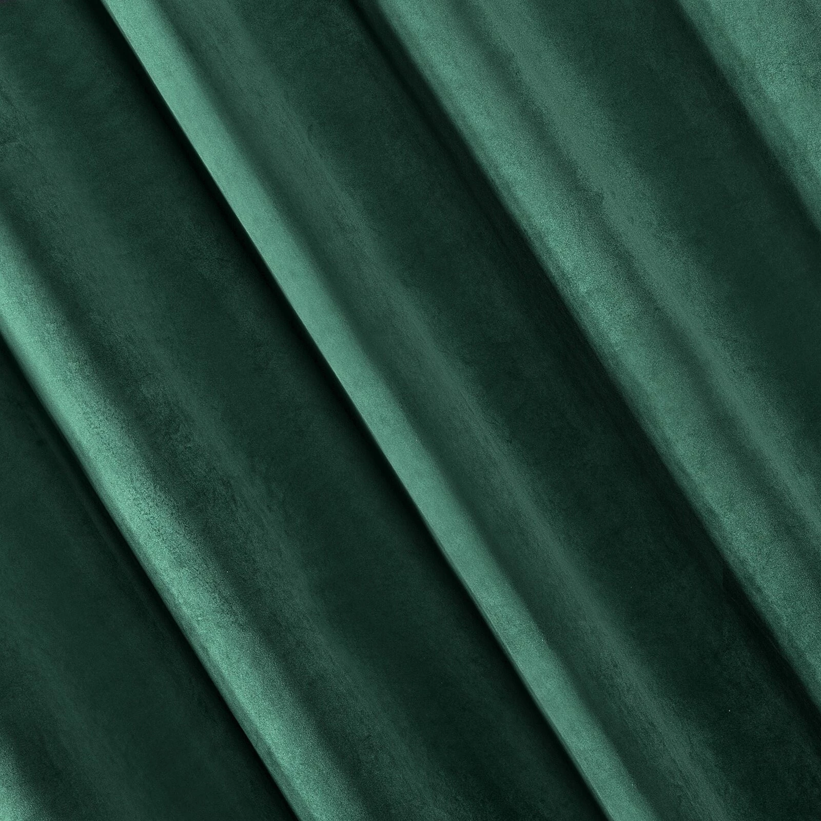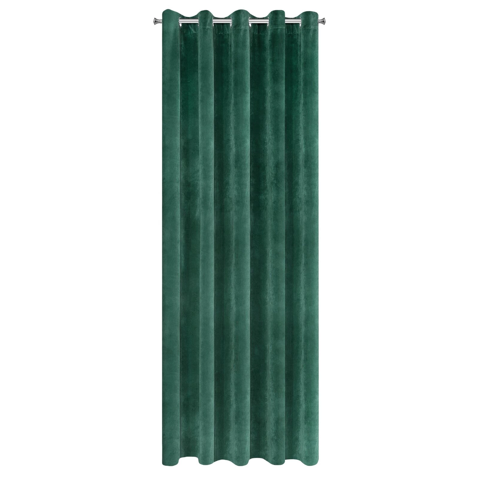 Gładka, jednokolorowa zasłona z miękkiego welwetu o charakterystycznym dla aksamitu połysku. Aż 10 szerokich przelotek umożliwia proste upięcie dekoracji okna. szerokość: 140 cm, długość: 250 cm, kolor: ciemnozielony, Gramatura: 290 GSM, Skład: 100% poliester