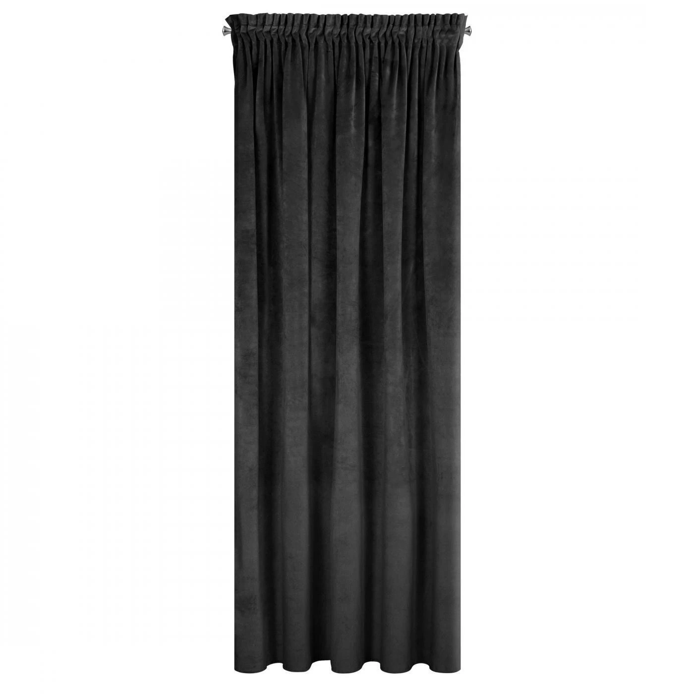 Gładka, jednokolorowa zasłona z miękkiego welwetu o charakterystycznym dla aksamitu połysku. Taśma marszcząca zawiera tunel do upięć na karniszu drążkowym. szerokość: 140 cm, długość: 270 cm, kolor: czarny, Gramatura: 290 GSM, Skład: 100% poliester