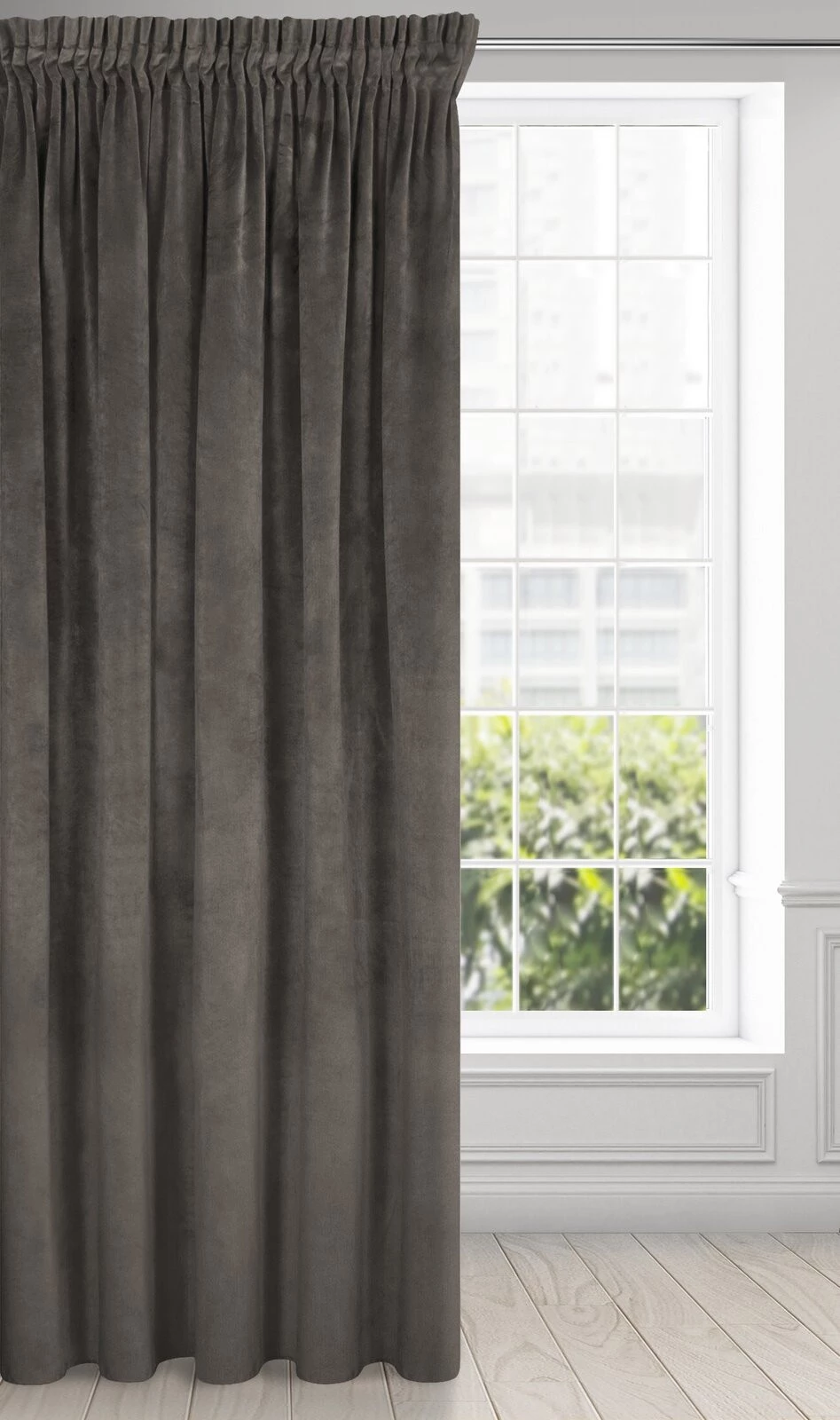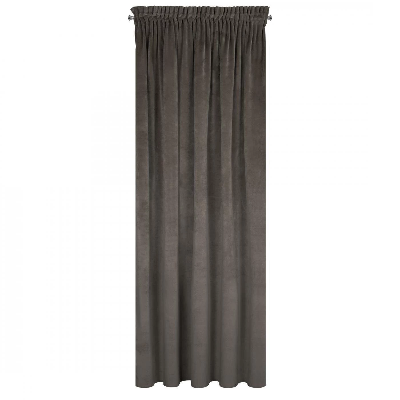 Gładka, jednokolorowa zasłona z miękkiego welwetu o charakterystycznym dla aksamitu połysku. Taśma marszcząca zawiera tunel do upięć na karniszu drążkowym. szerokość: 140 cm, długość: 270 cm, kolor: grafitowy, Gramatura: 290 GSM, Skład: 100% poliester